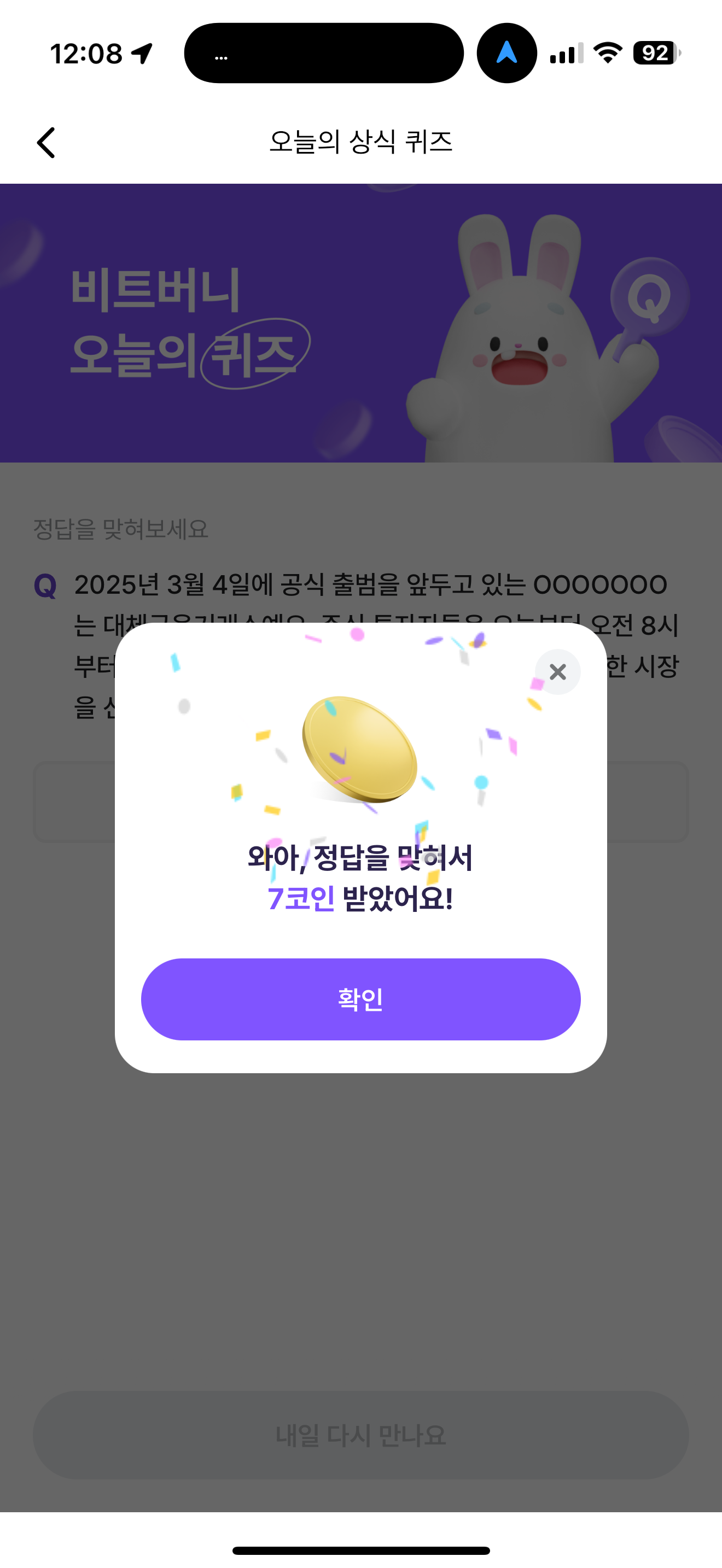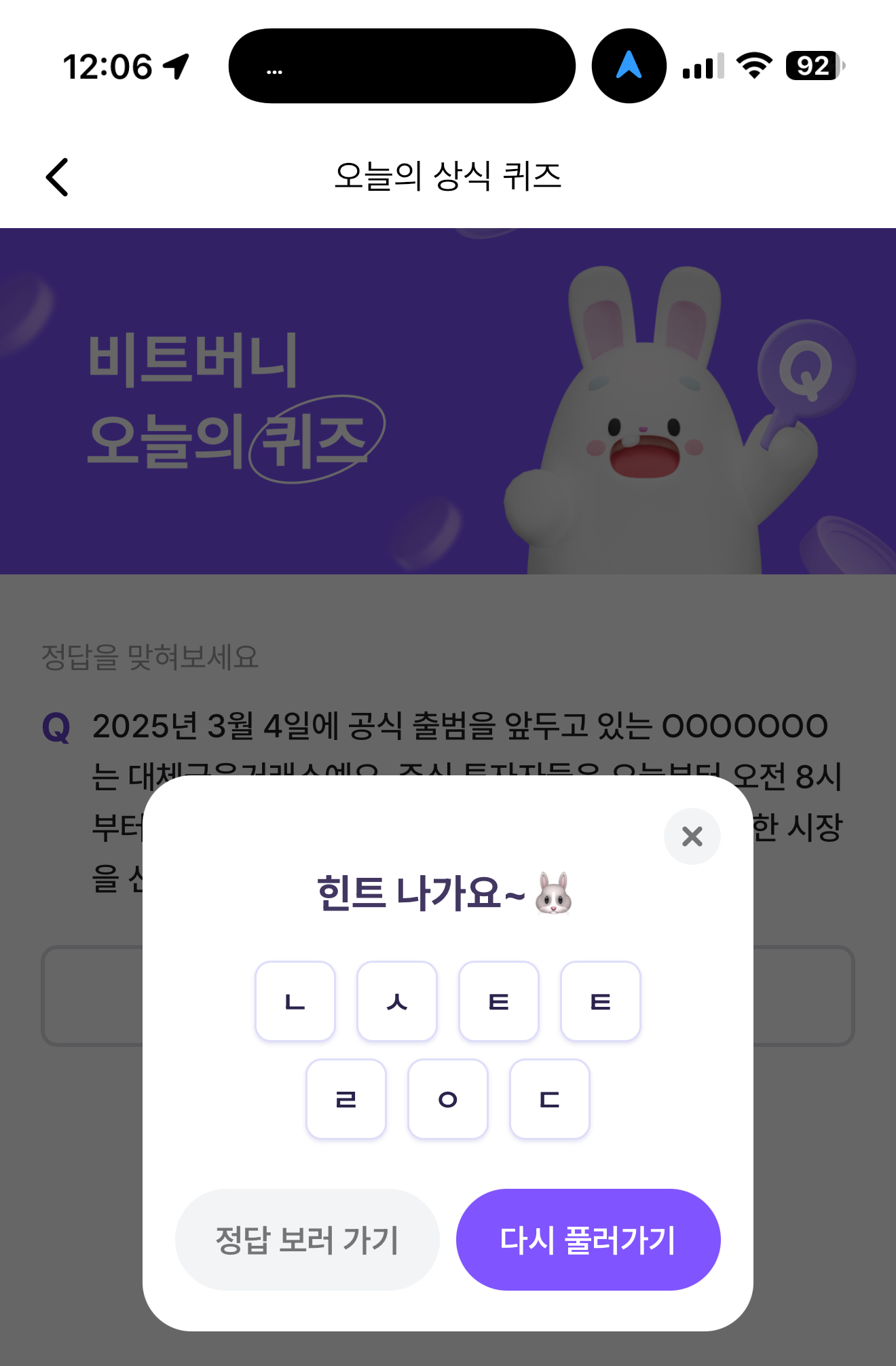 비트버니 오늘의 퀴즈 초성 힌트는 ㄴㅅㅌㅌㄹㅇㄷ 입니다