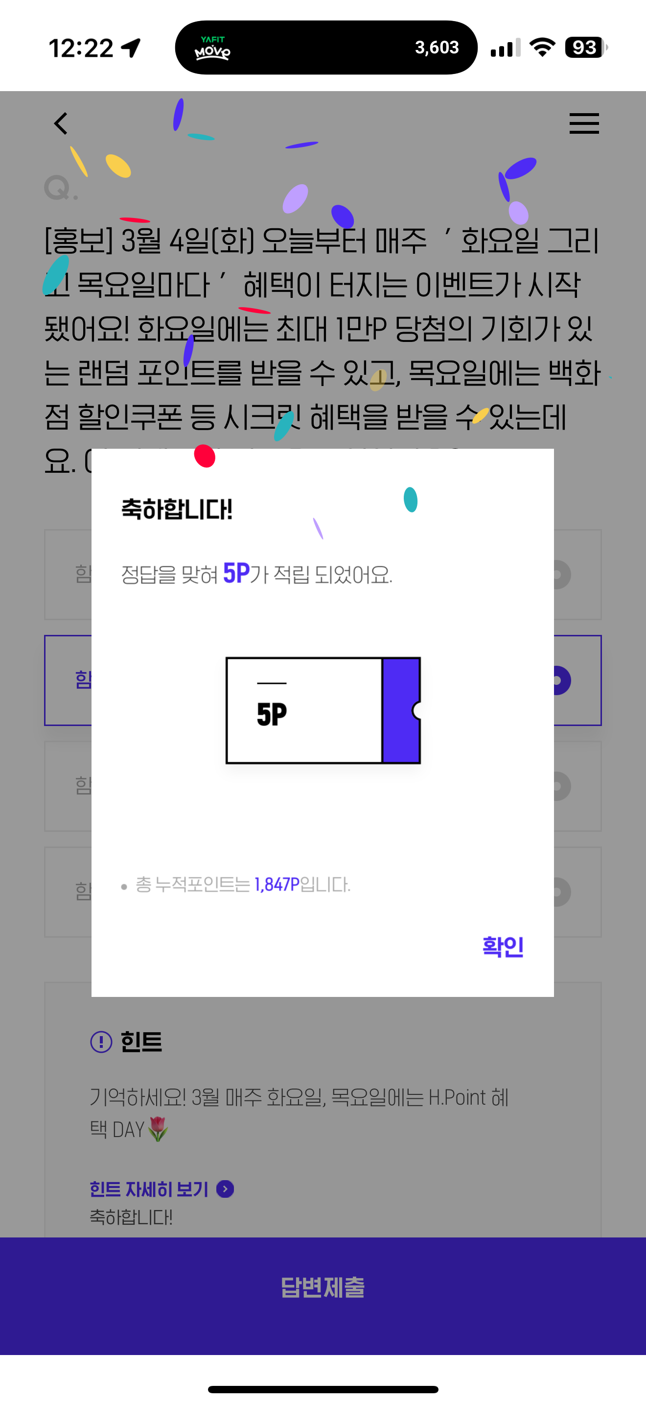 H포인트 퀴즈 3월 4일 문제입니다