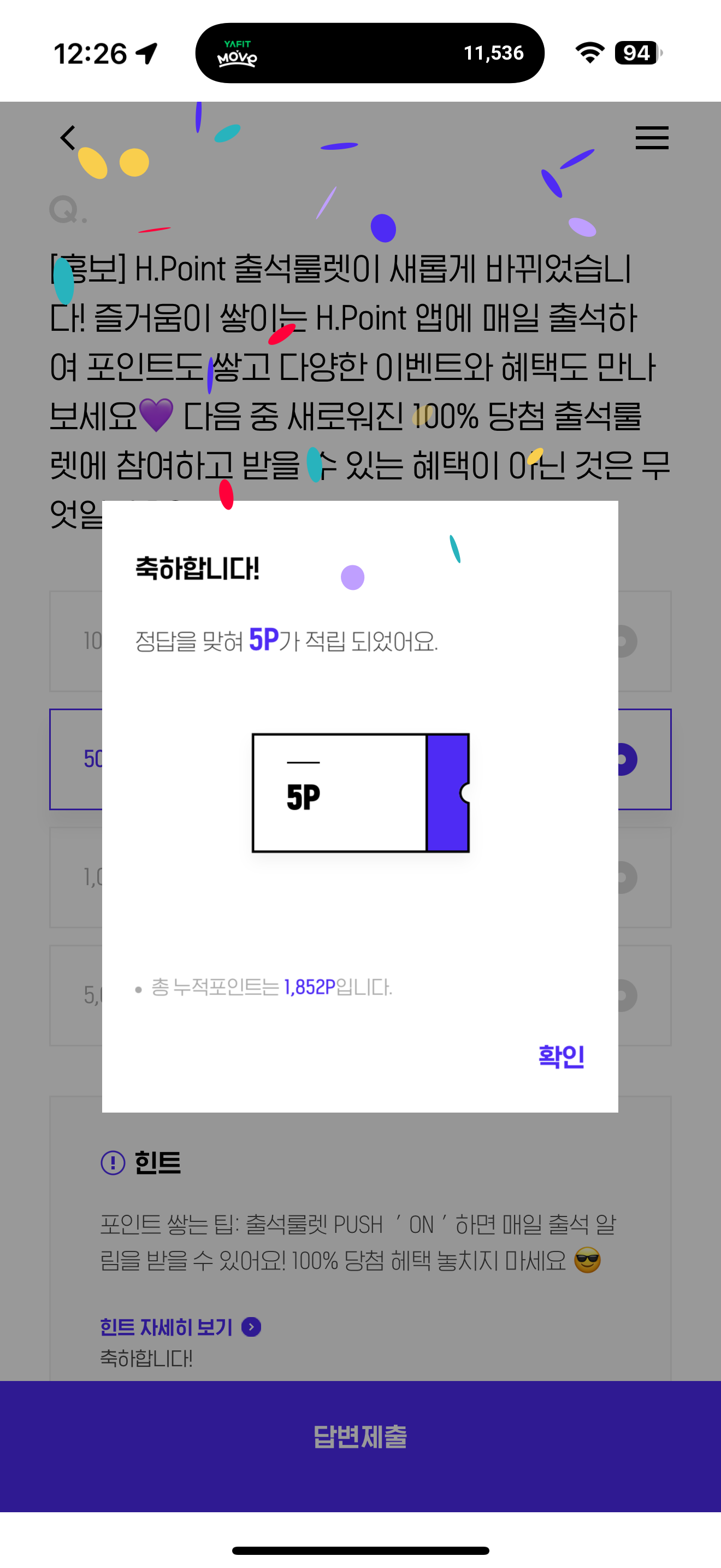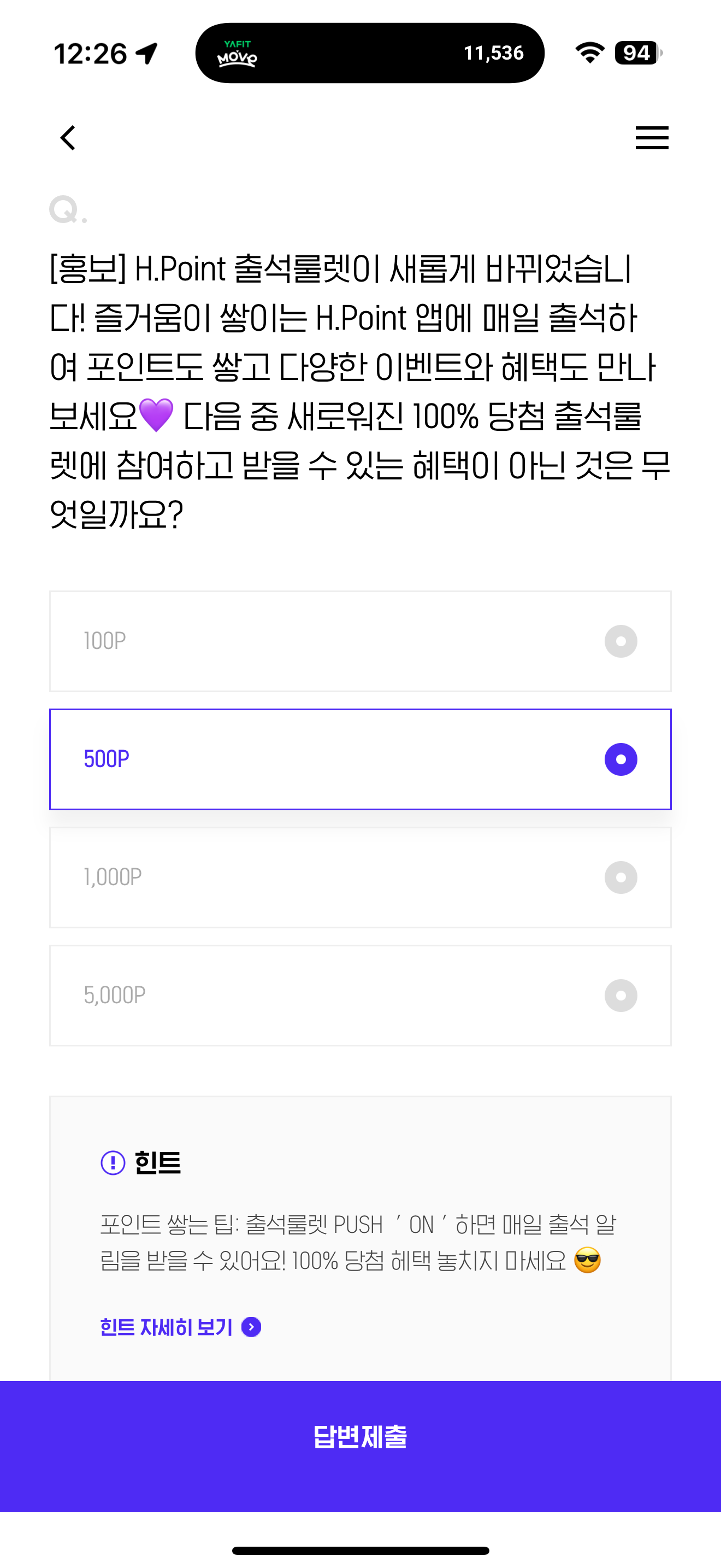 H포인트 퀴즈 정답은 500P 입니다
