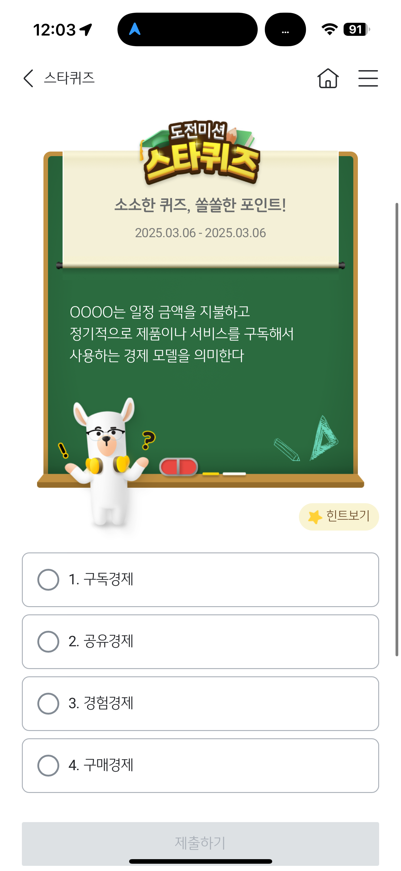 KB스타뱅킹 스타퀴즈 3월 6일 정답(OOOO는 일정 금액을 지불하고 정기적으로 제품이나 서비스를 구독해서 사용하는 경제 모델을 의미한다)