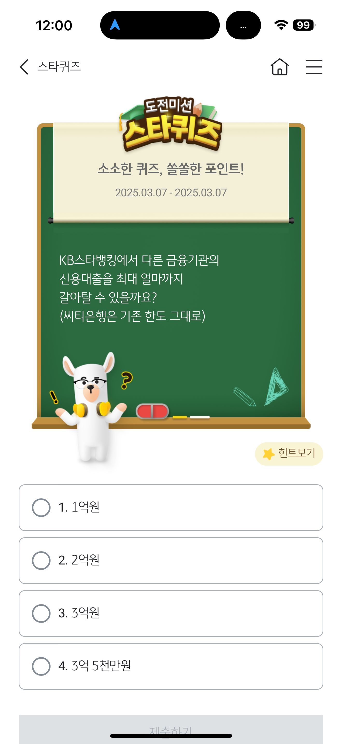 KB스타뱅킹 스타퀴즈 3월 7일 문제입니다