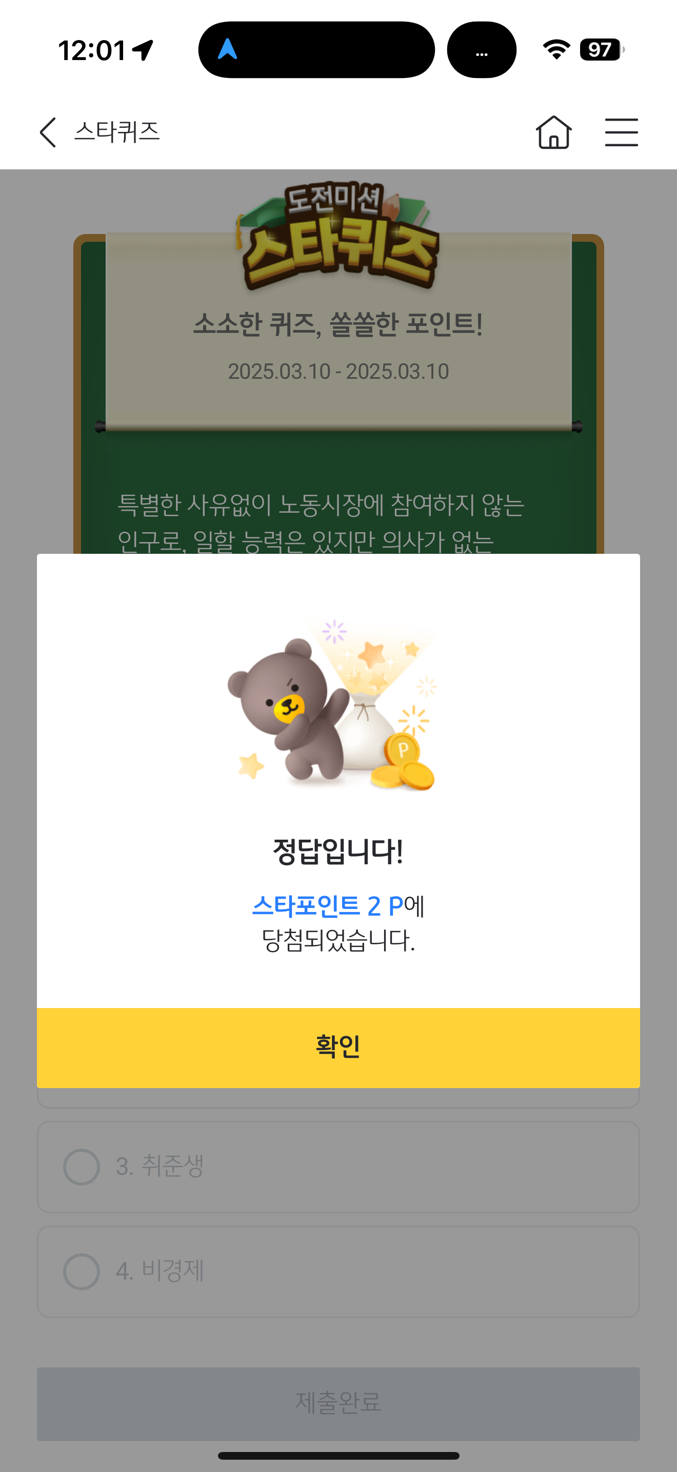KB스타뱅킹 스타퀴즈 정답은 쉬었음 입니다