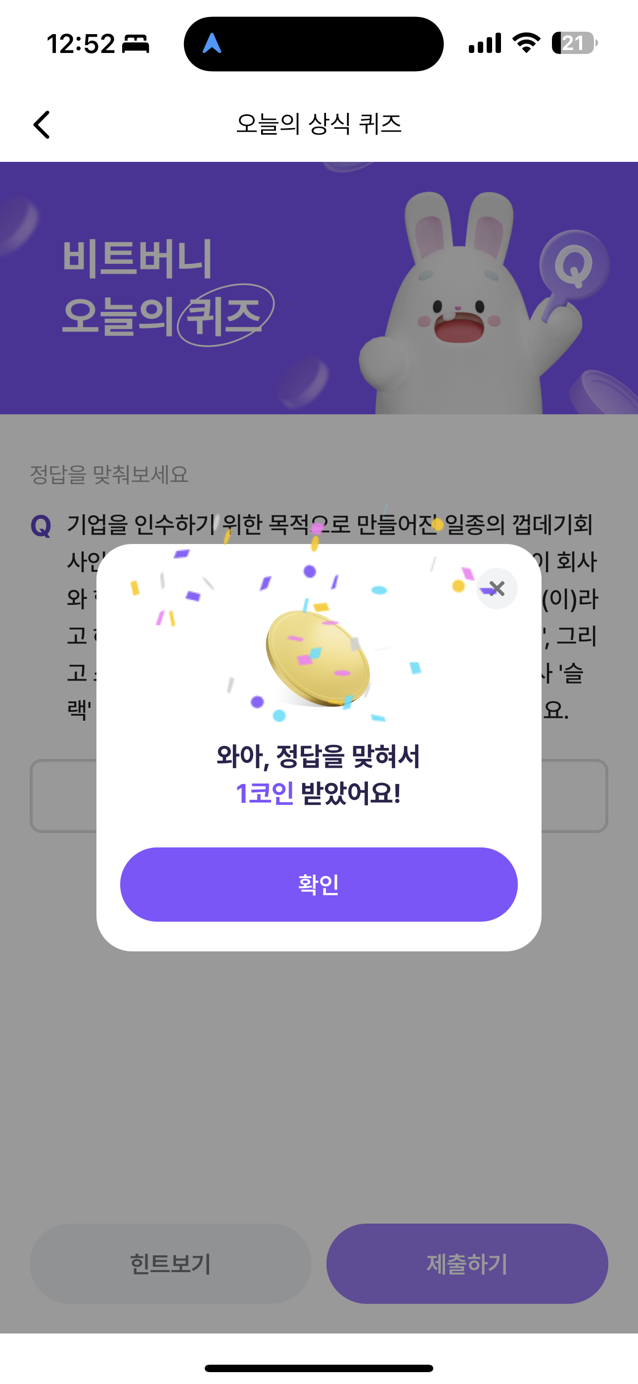 비트버니 오늘의 퀴즈 정답은 스팩상장 입니다