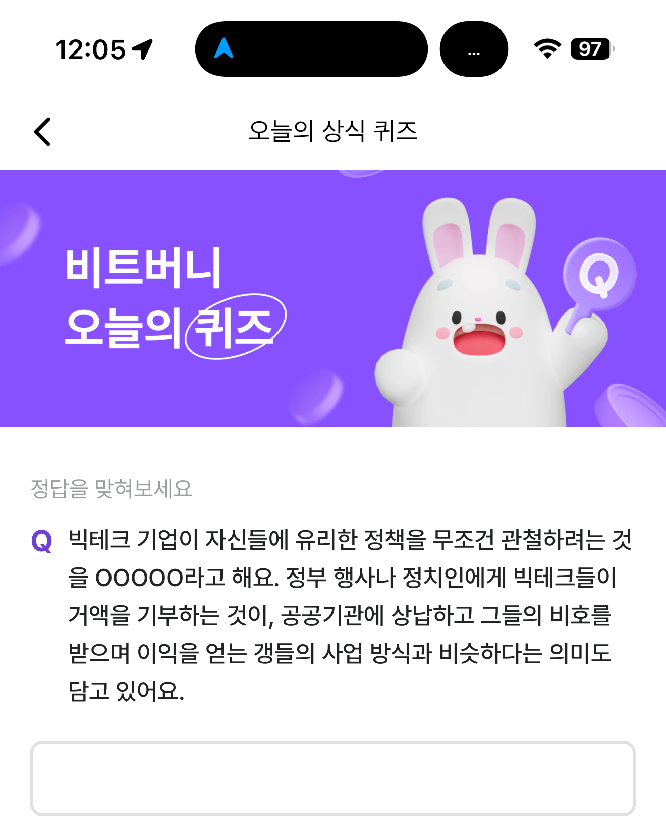 비트버니 오늘의 퀴즈 3월 12일 문제입니다