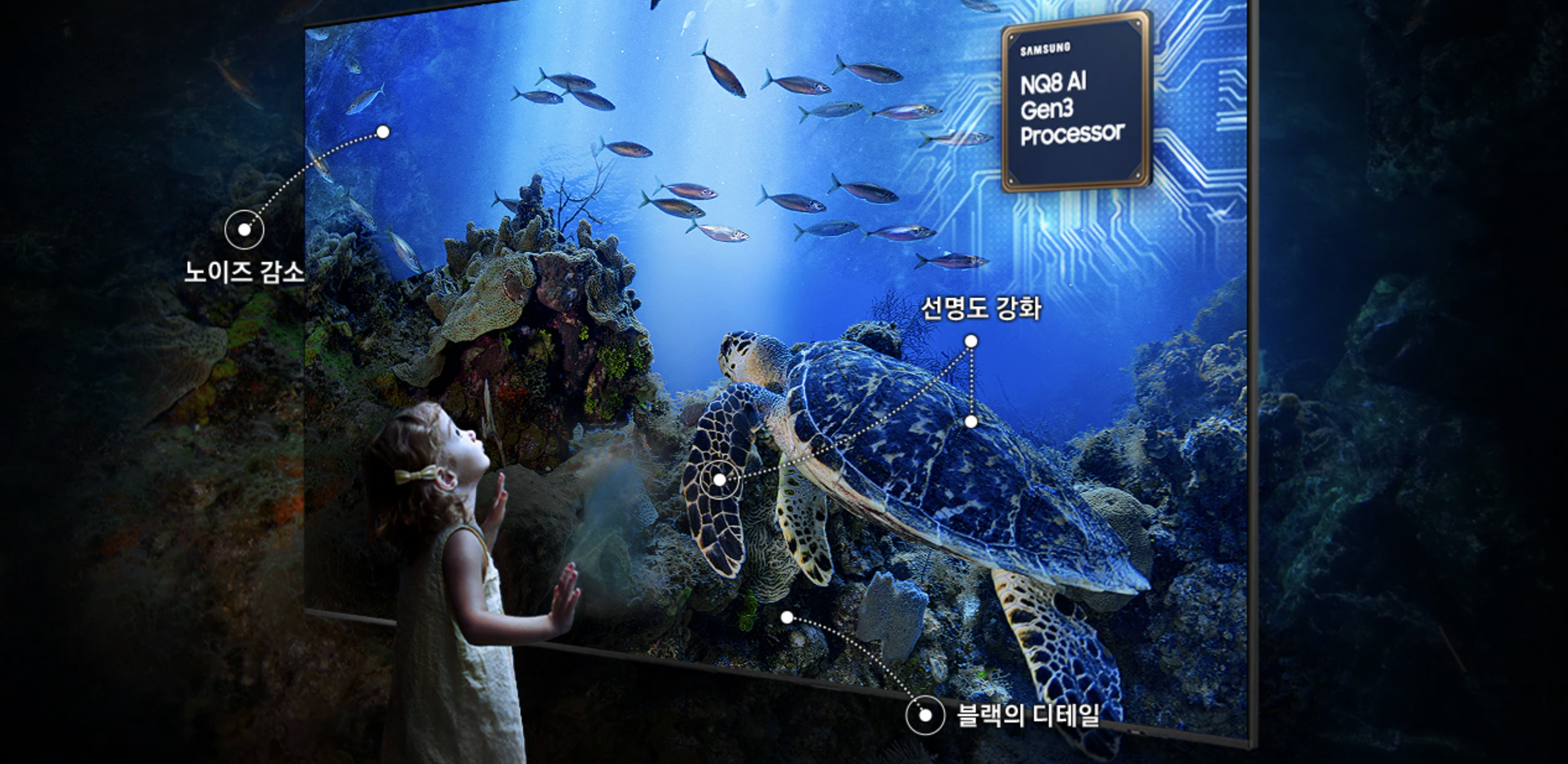 최상위 모델인 삼성 Neo QLED 8K TV(QNF990) 는 3세대 AI 8K 프로세서를 탑재해 저해상도 콘텐츠도 8K 수준으로 업스케일링하는 기능이 더욱 강화되었습니다.