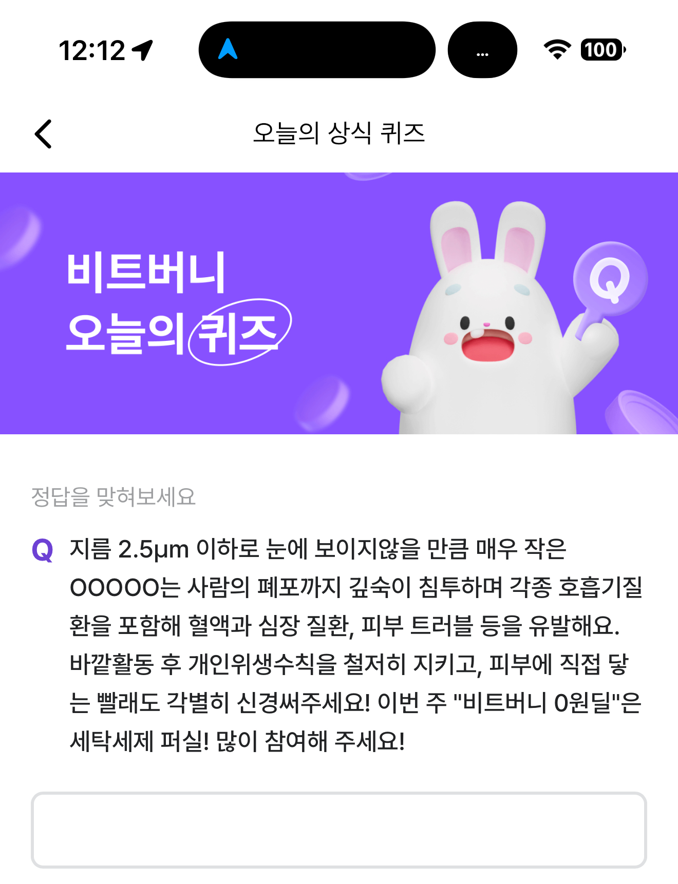 비트버니 오늘의 퀴즈 정답은 초미세먼지 입니다
