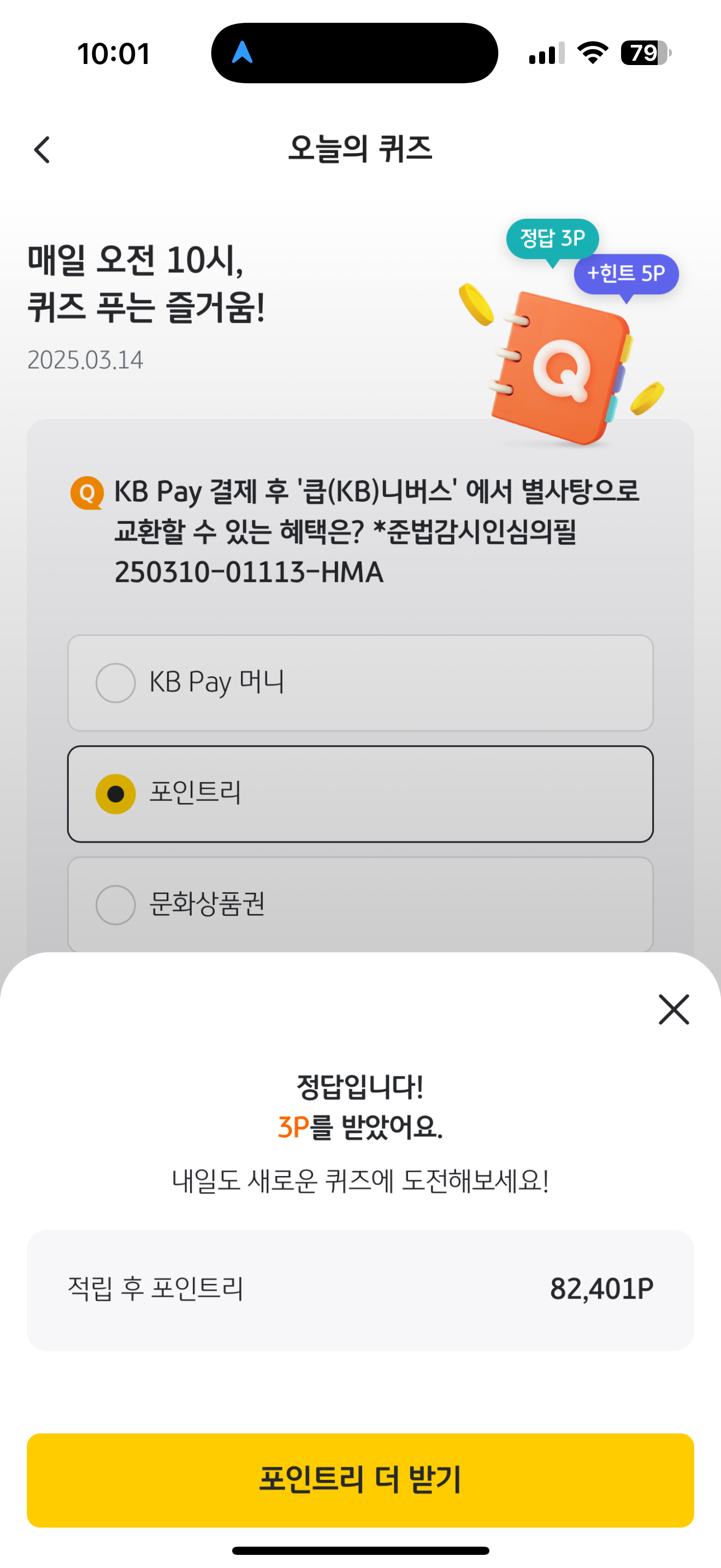KB Pay 오늘의 퀴즈 정답은 포인트리 입니다