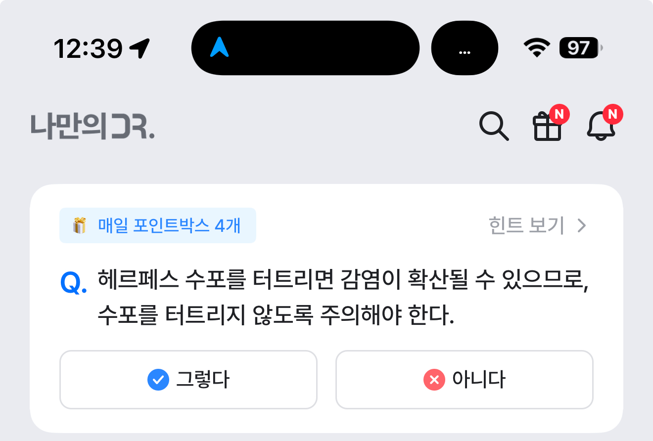 헤르페스 수포를 터트리면 감염이 확산될 수 있으므로, 수포를 터트리지 않도록 주의해야 한다. 그렇다 아니다 선택하면 되는데요. 우리는 수포가 보이면 터트리는게 일반적이죠 그런데 이게 헤르페스 수포면 터트리면 감염이 확산될 수 있다고 합니다. 정말 그럴까요? 참고해서 주의해 보세요