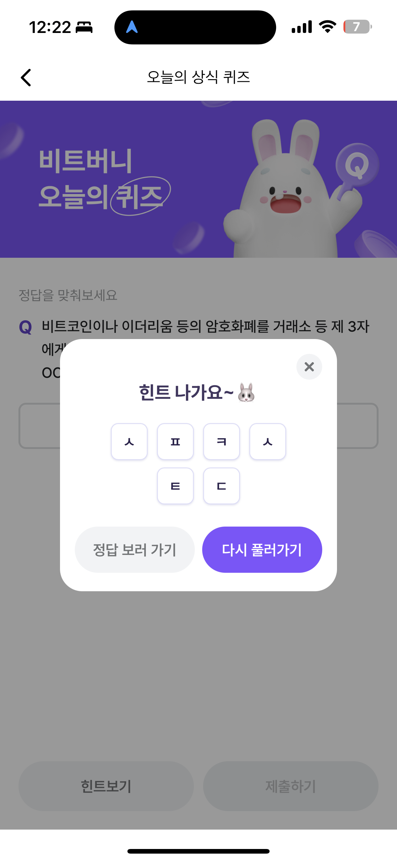 비트버니 오늘의 퀴즈 초성 힌트는 ㅅㅍㅋㅅㅌㄷ 입니다