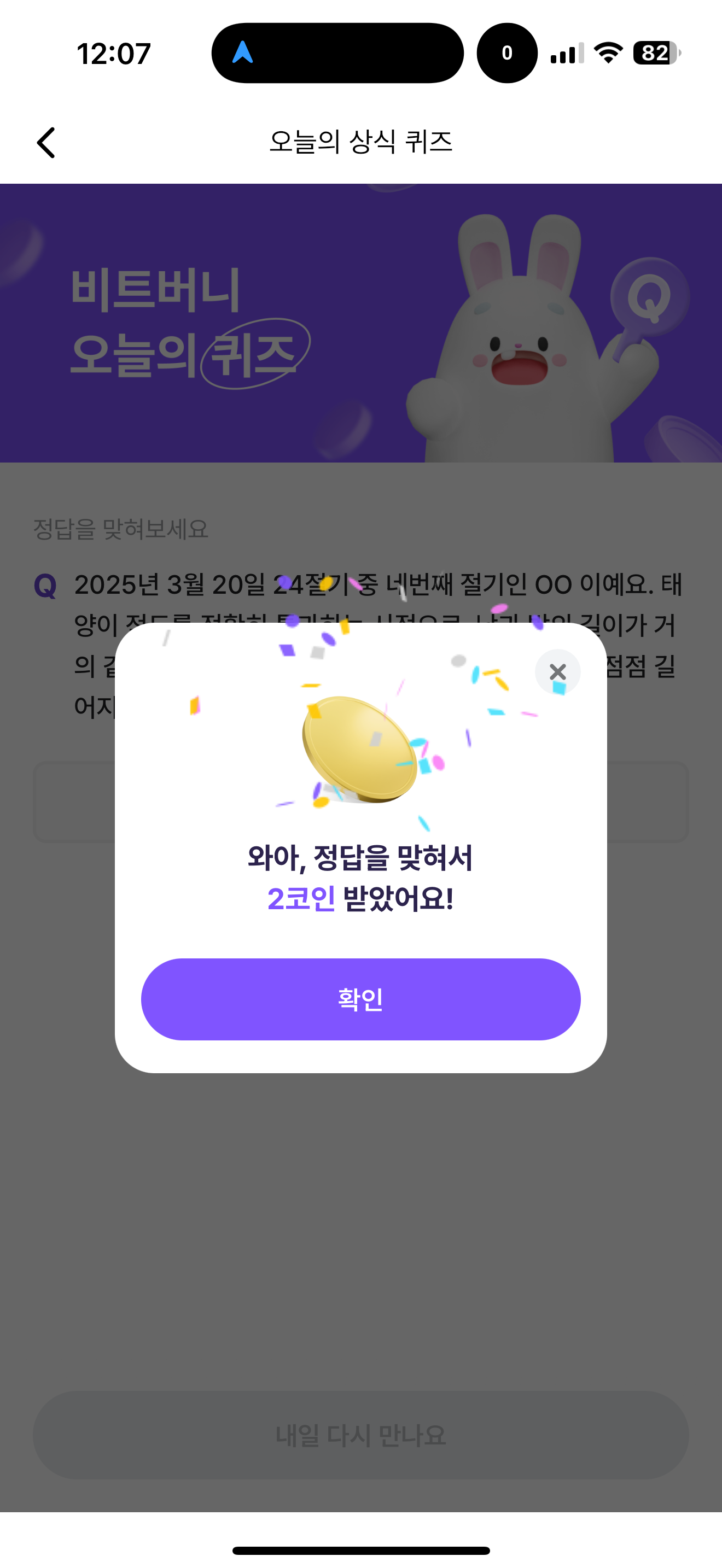 비트버니 오늘의 퀴즈 정답은 춘분 입니다