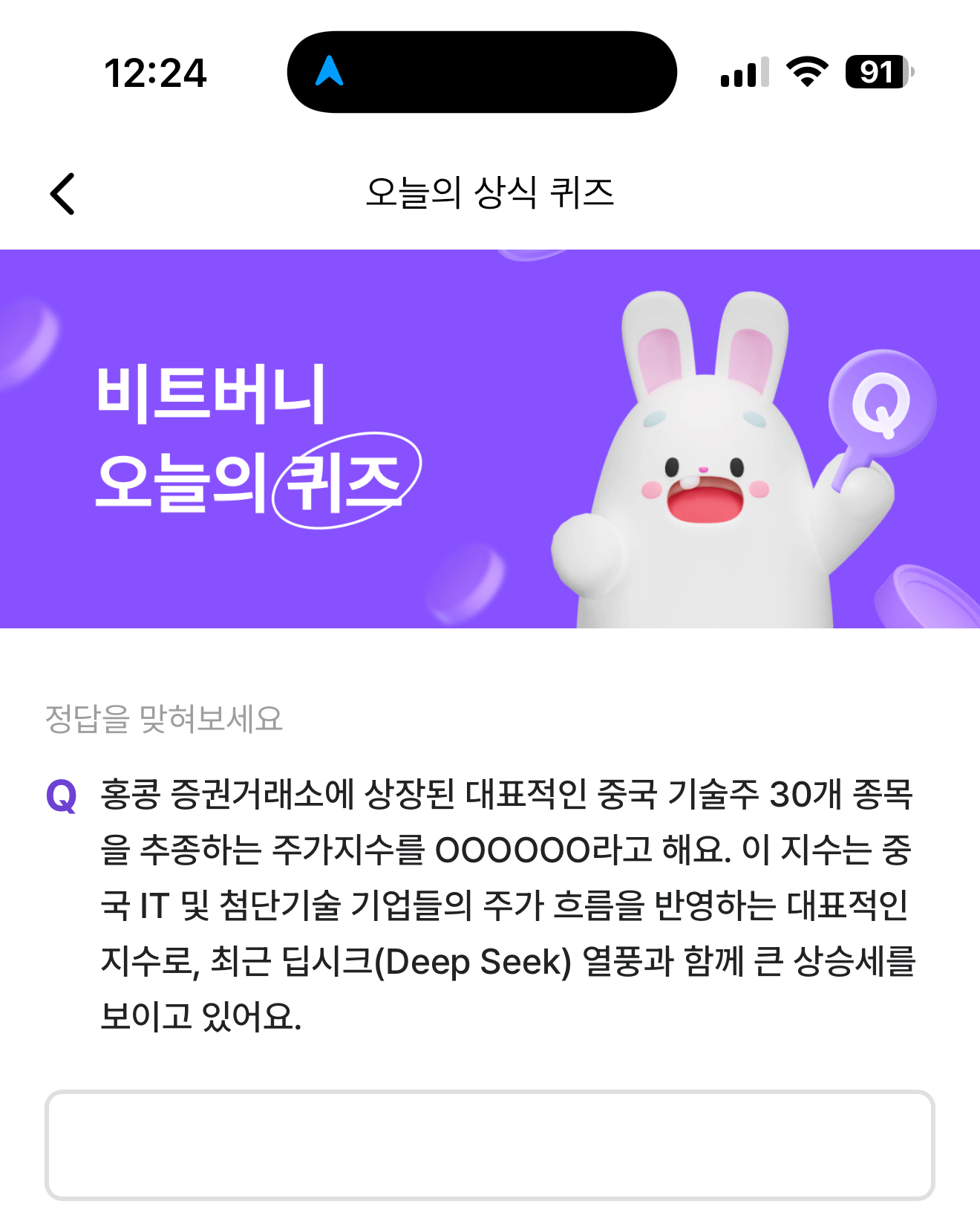 비트버니 오늘의 퀴즈 정답은 항셍테크지수 입니다
