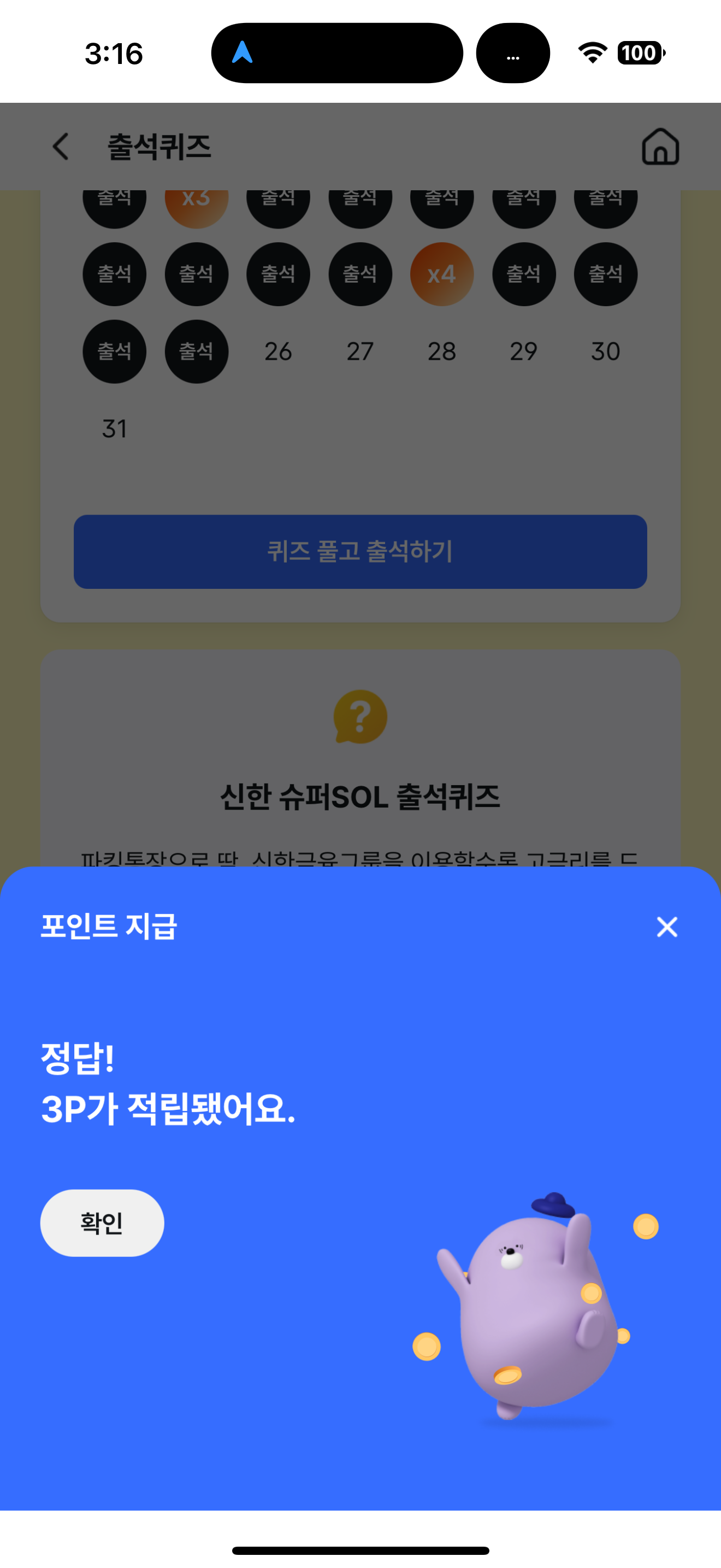 신한 슈퍼SOL 출석퀴즈 3월 26일 문제입니다