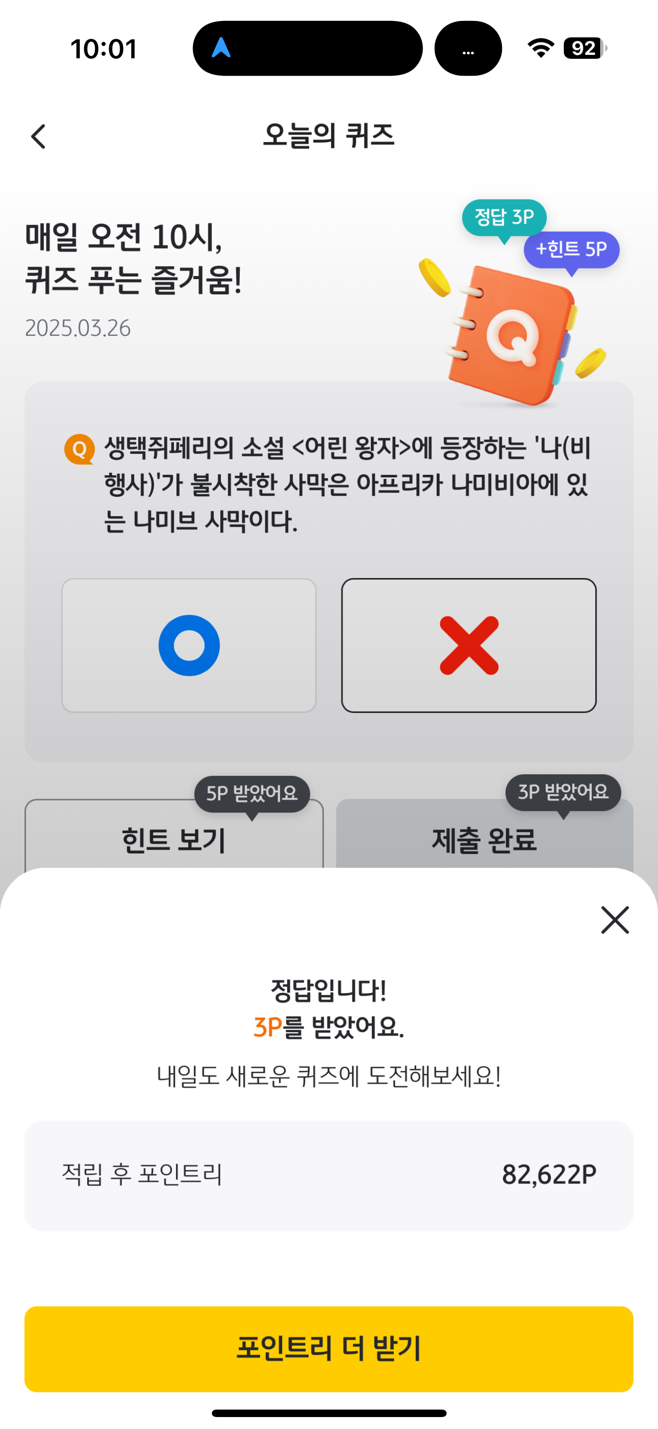 KB Pay 오늘의 퀴즈 정답은 X 입니다