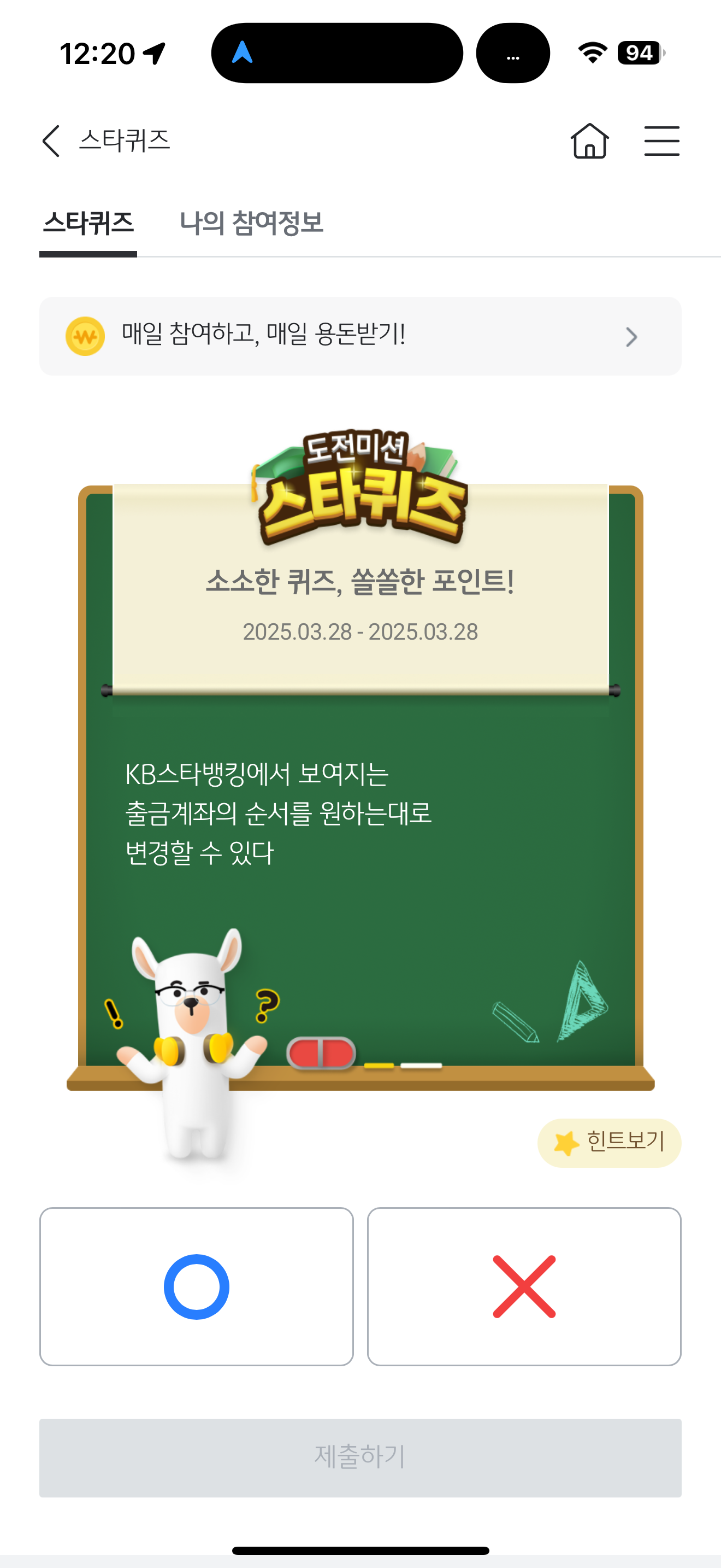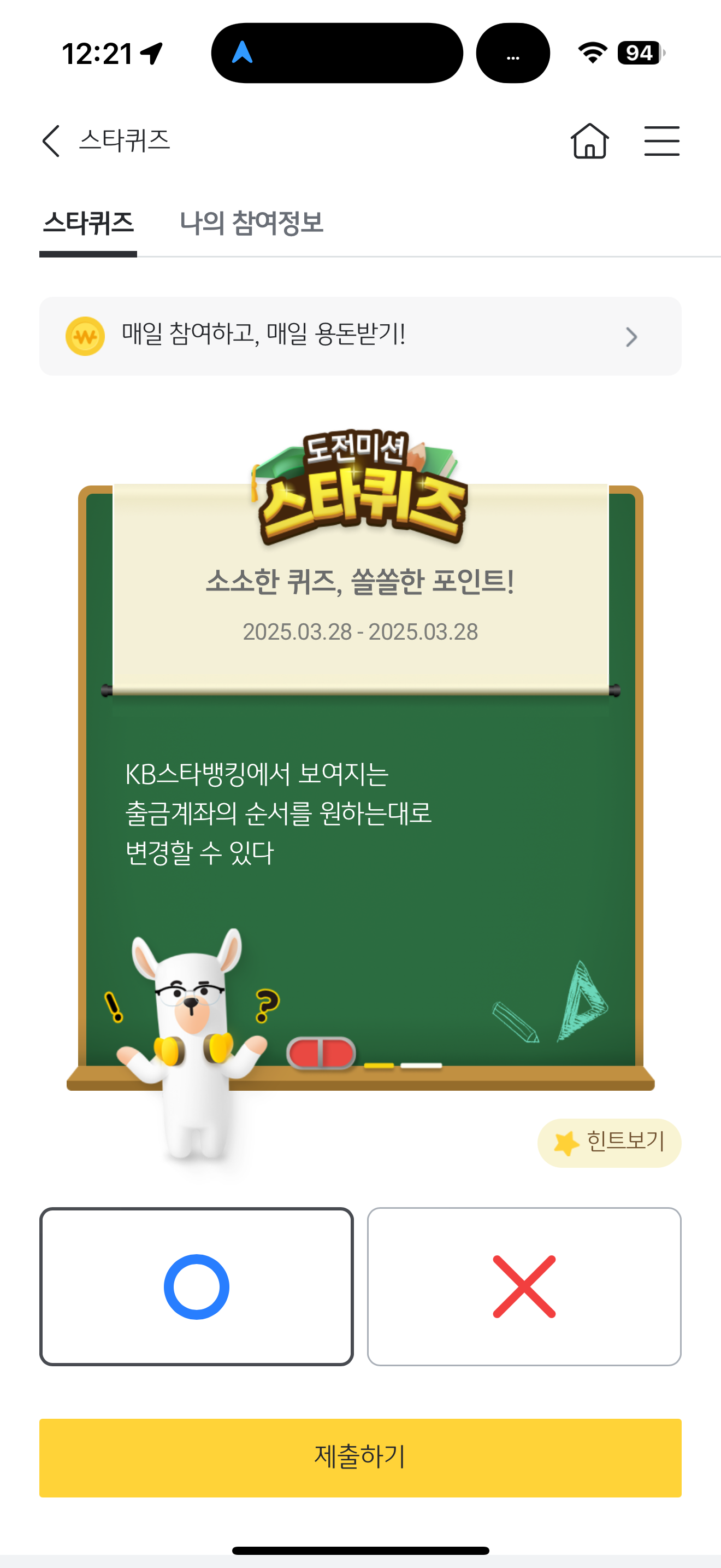 KB스타뱅킹 스타퀴즈 3월 28일 문제입니다