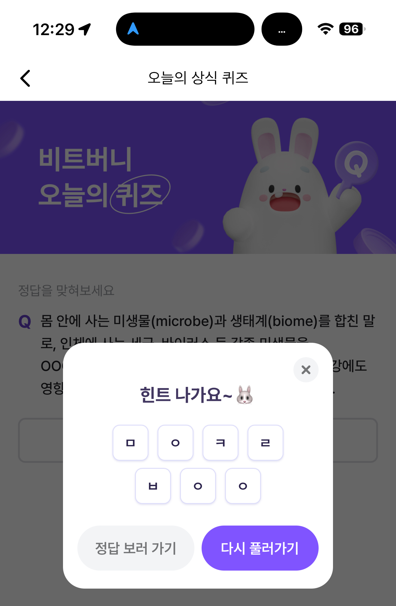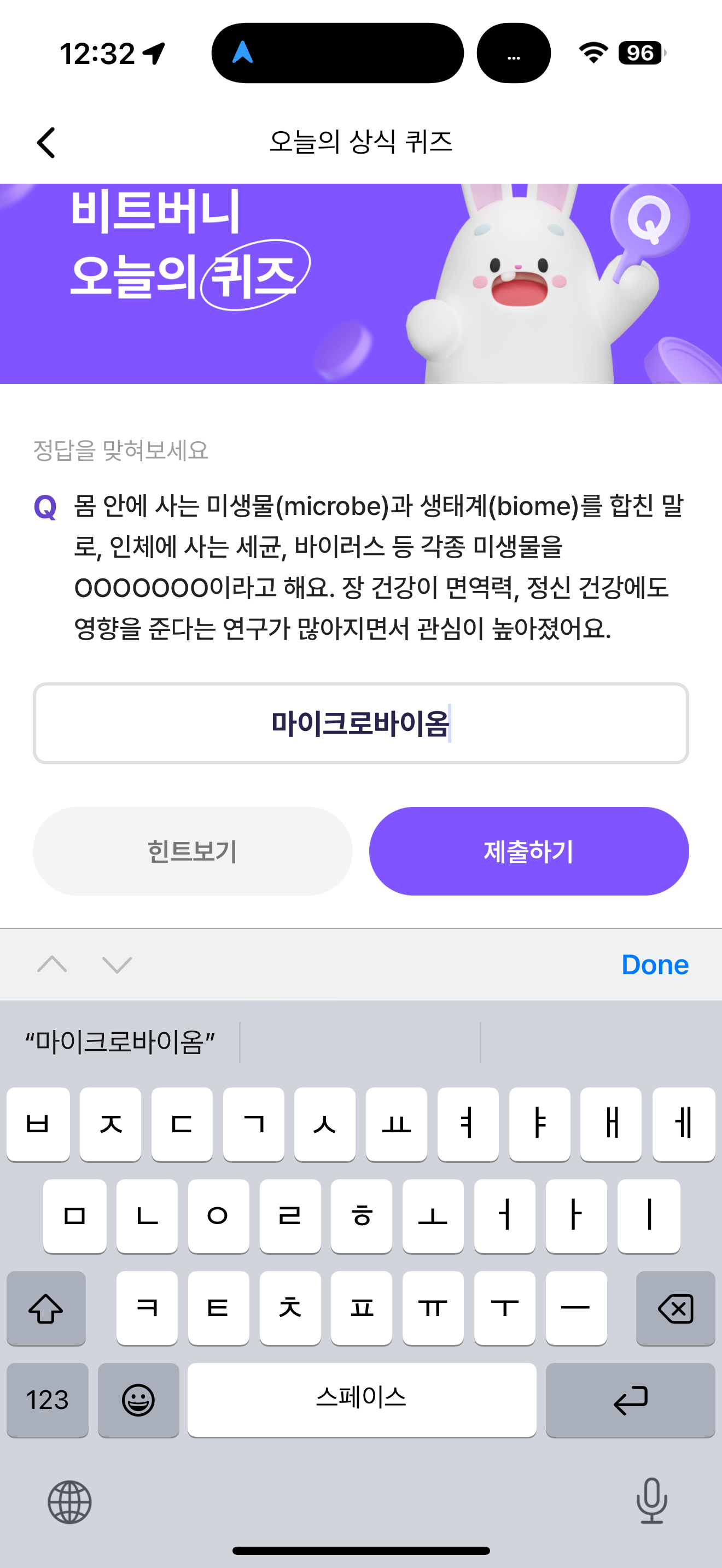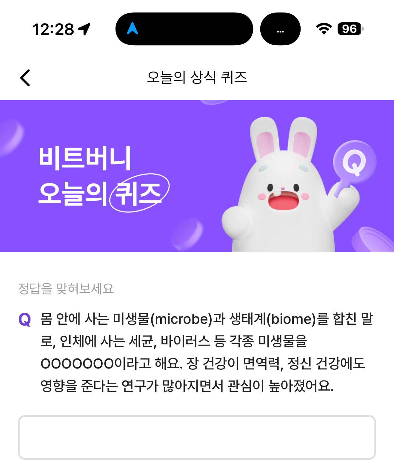비트버니 오늘의 퀴즈 정답은 마이크로바이옴 입니다