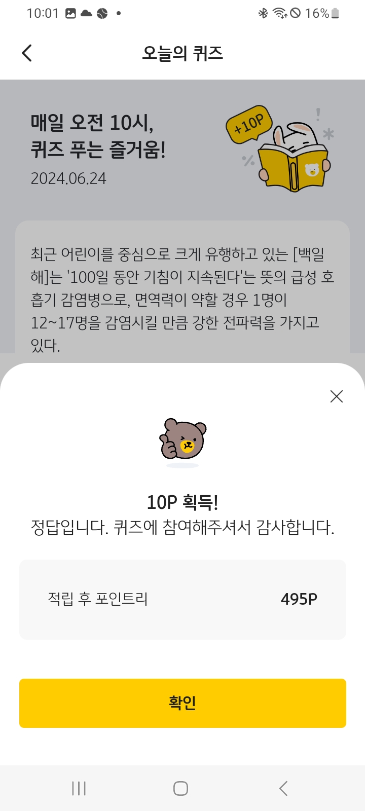 10포인트를 받았스니다. 포인트는 현금 전환 가능하니 꼭 받으시고요. 여러분의 재테크를 응원합니다