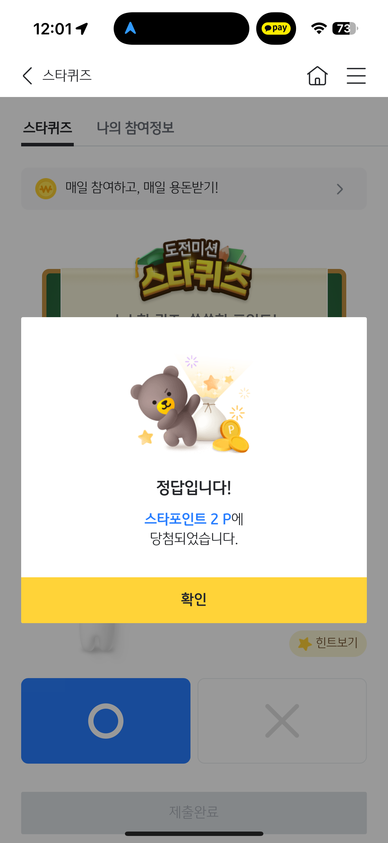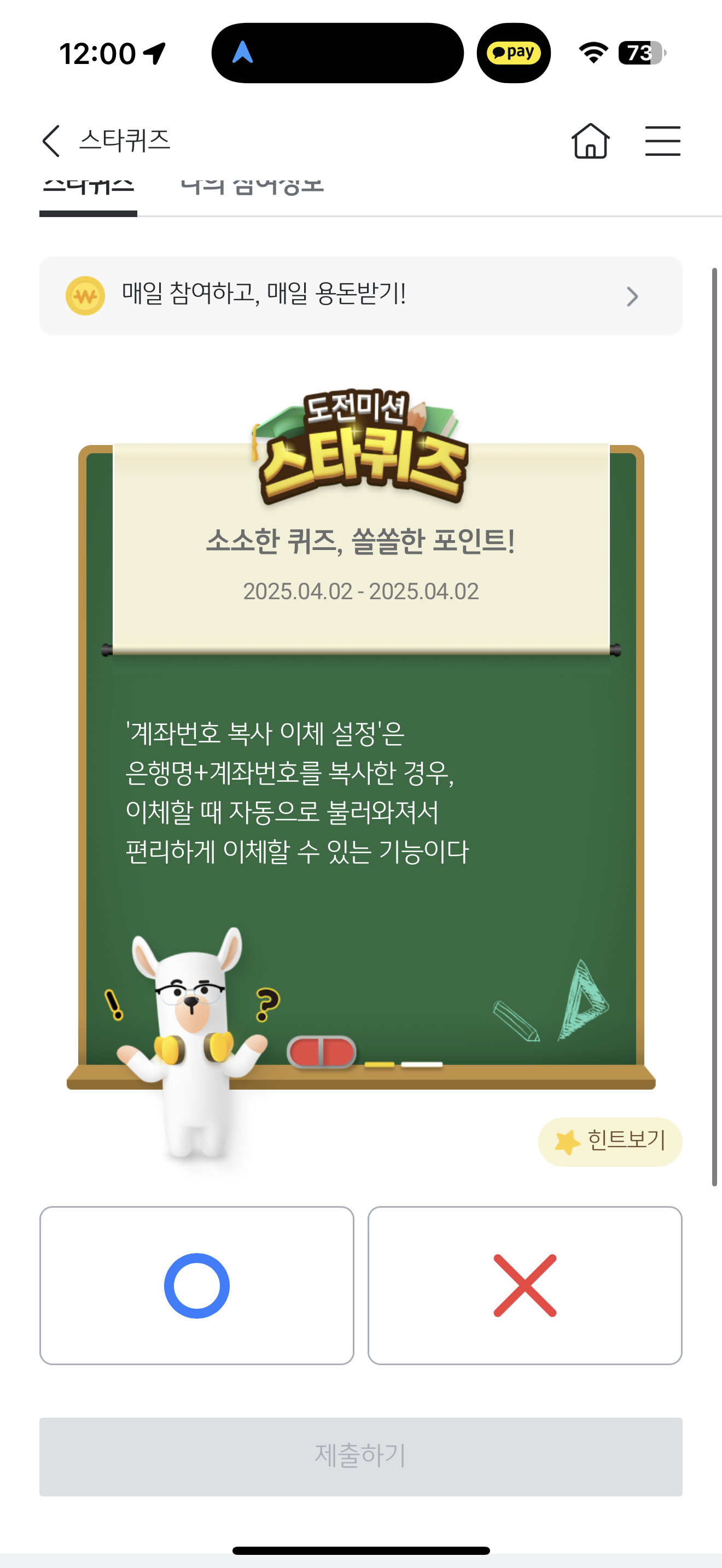 KB스타뱅킹 스타퀴즈 정답은 O 입니다