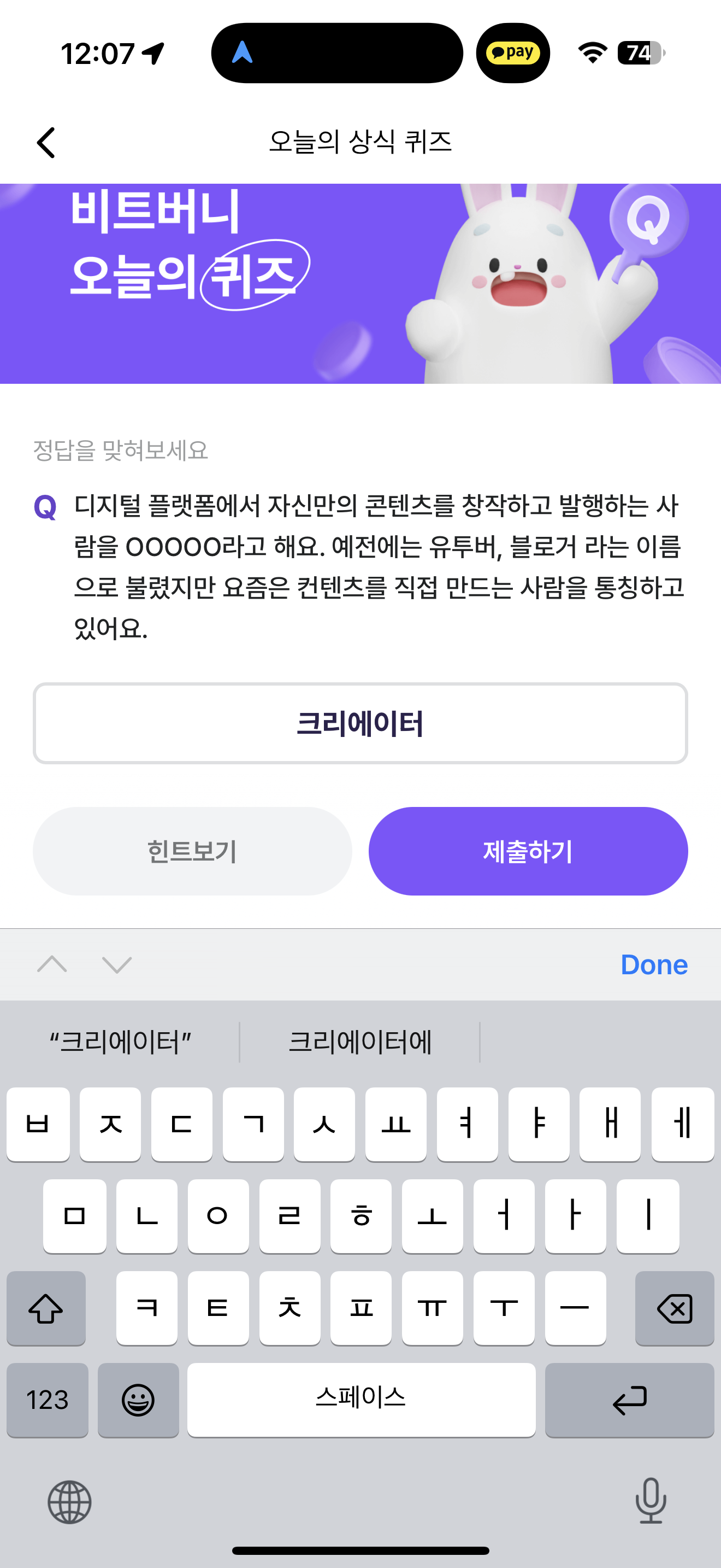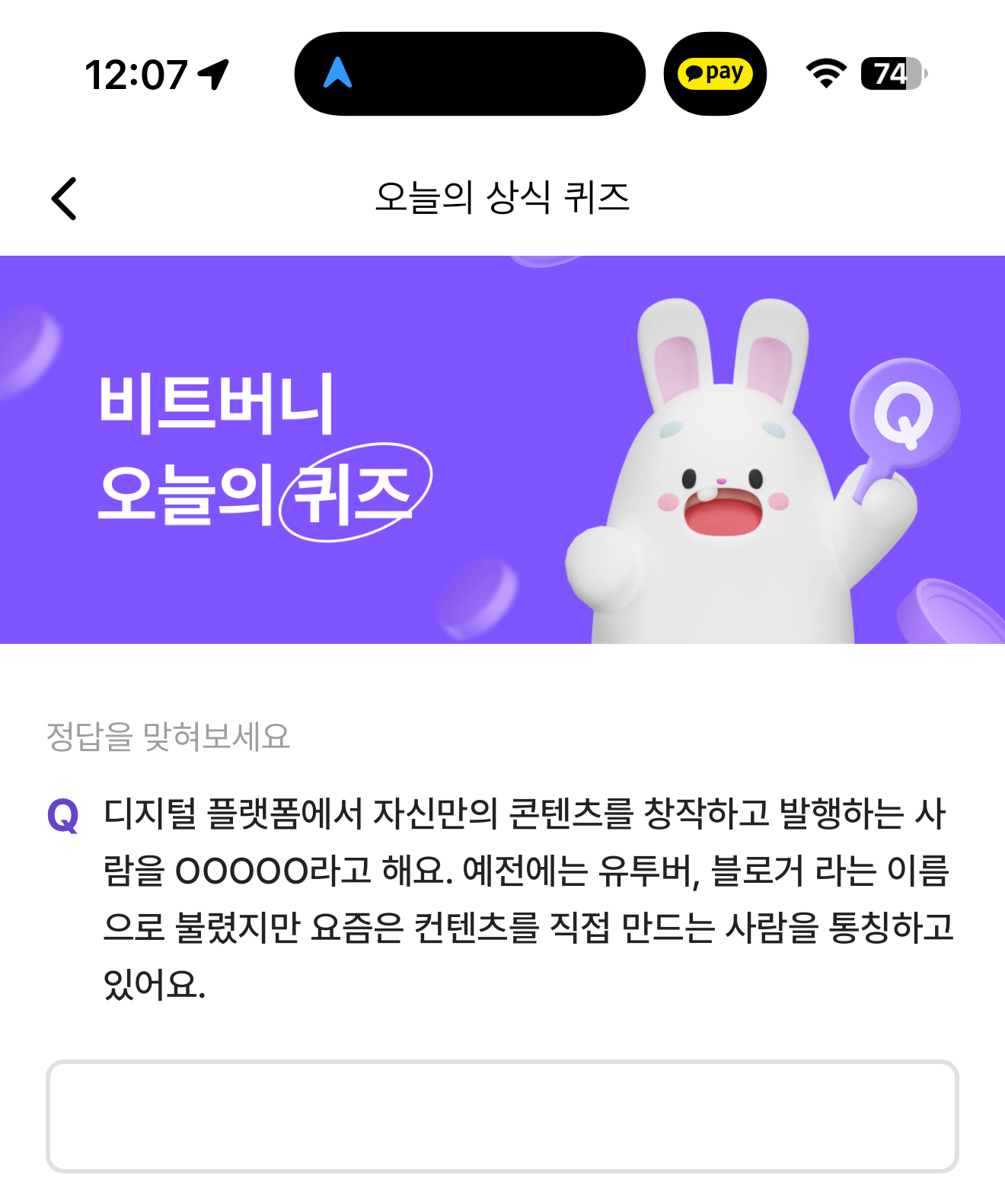비트버니 오늘의 퀴즈 정답은 크리에이터 입니다