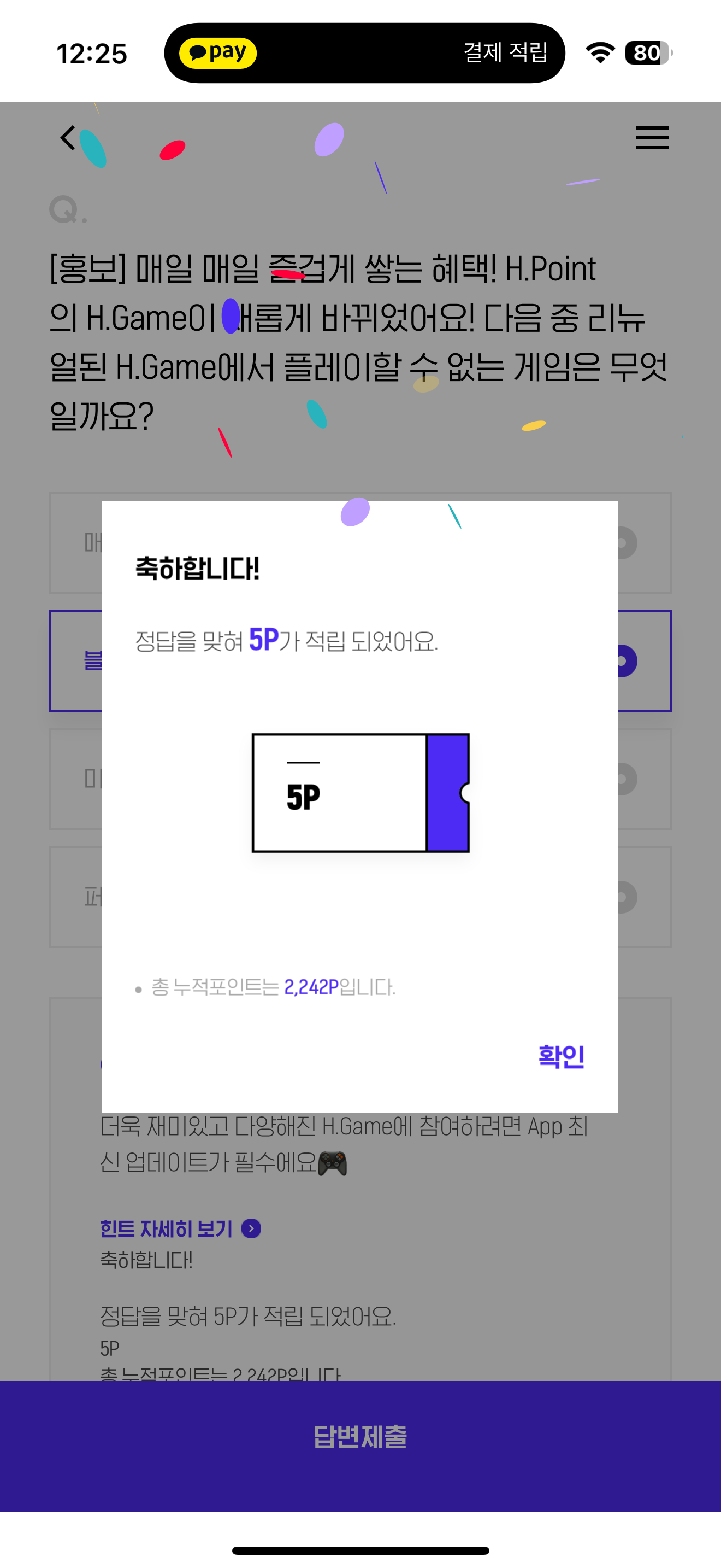 H포인트 퀴즈 정답은 블록팡팡 입니다