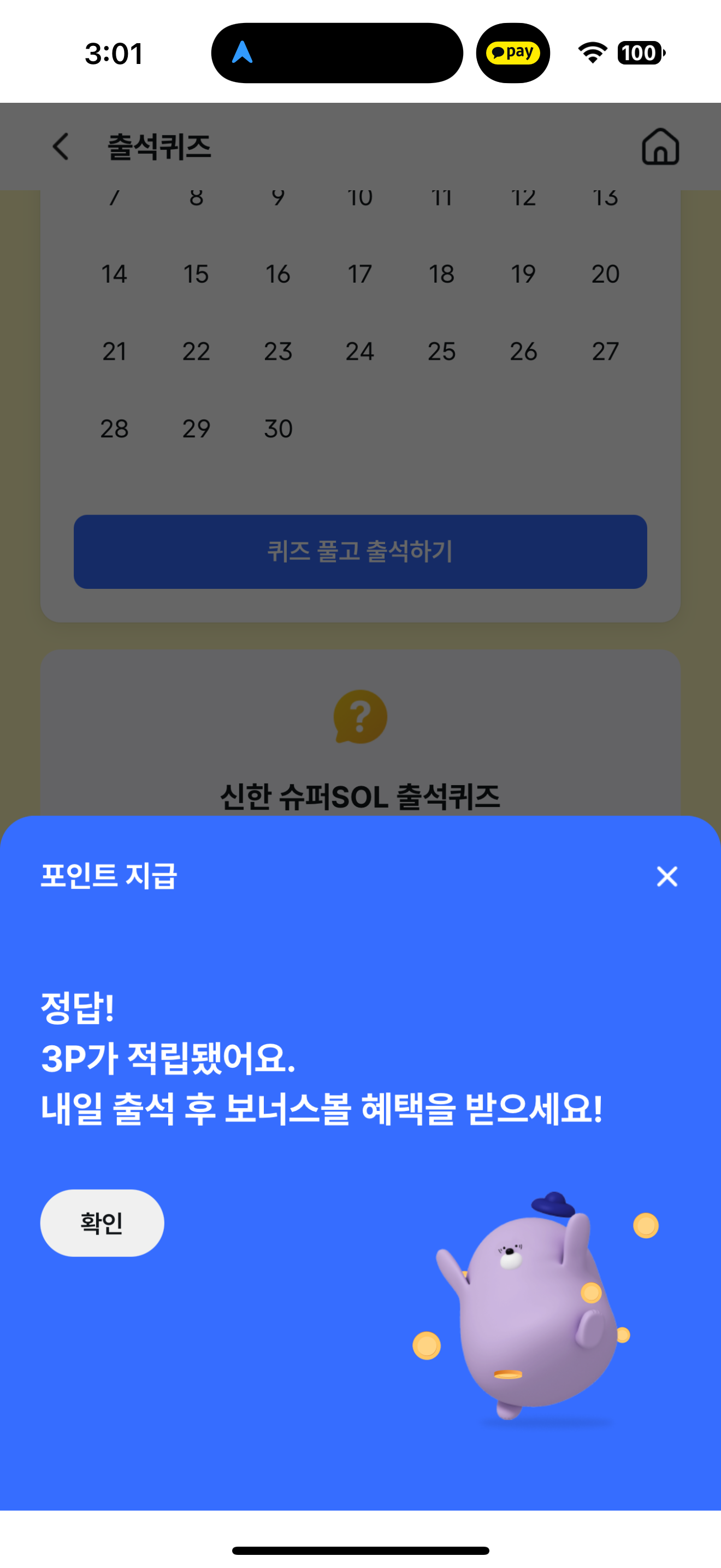 신한 슈퍼SOL 출석퀴즈 정답은 할부 수수료 입니다