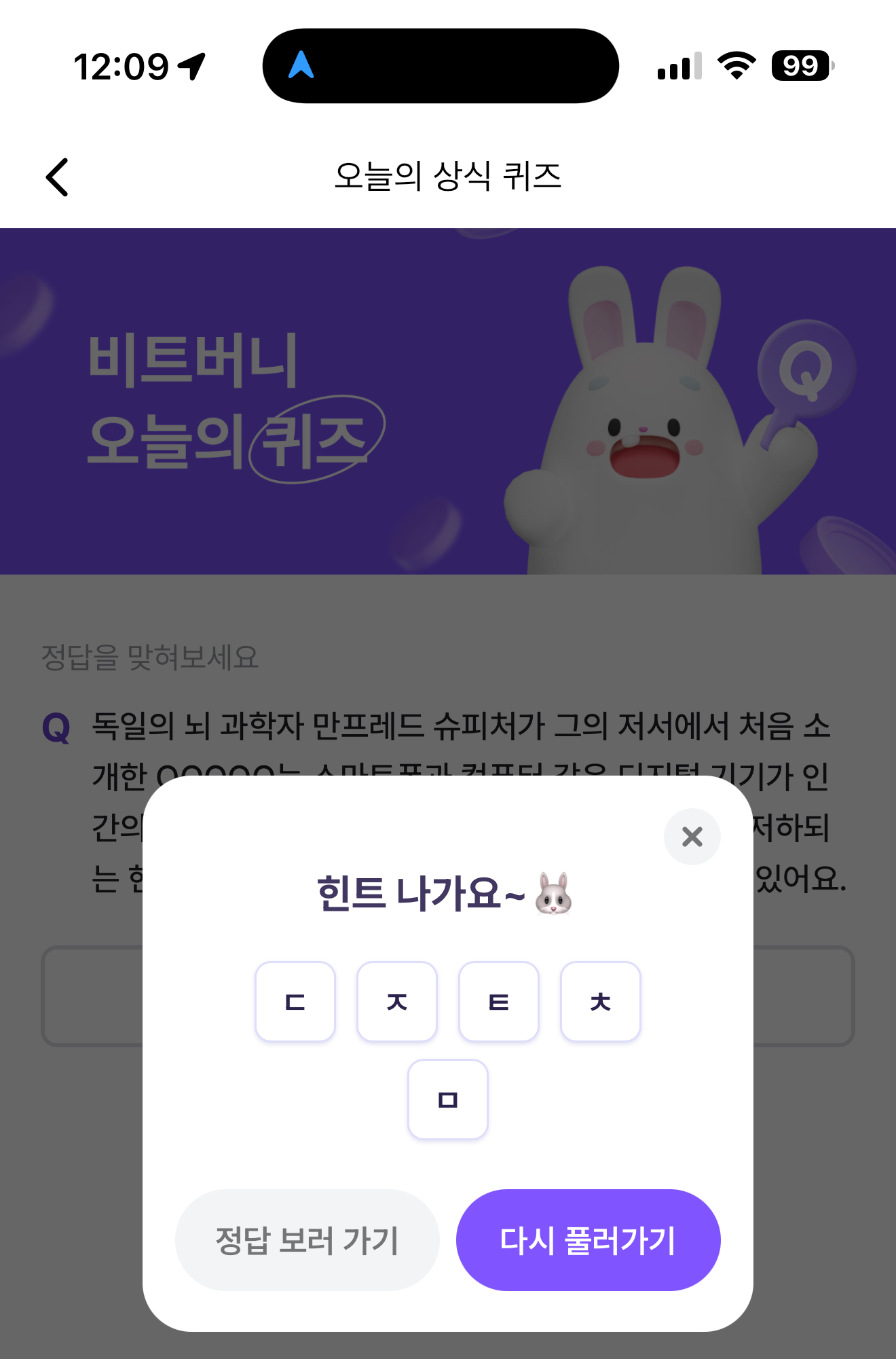 비트버니 오늘의 퀴즈 정답은 디지털치매 입니다