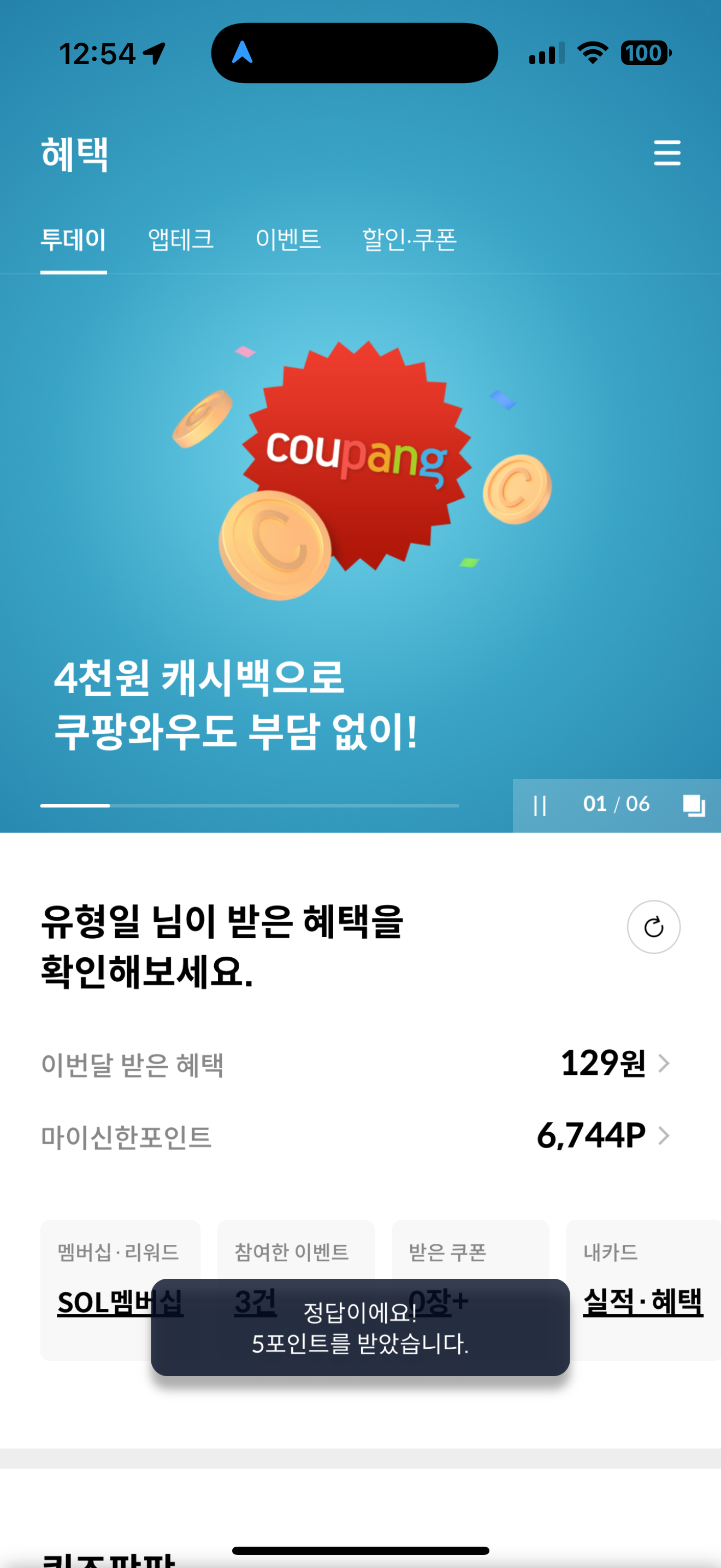 신한카드 퀴즈팡팡 정답은 5포인트 입니다