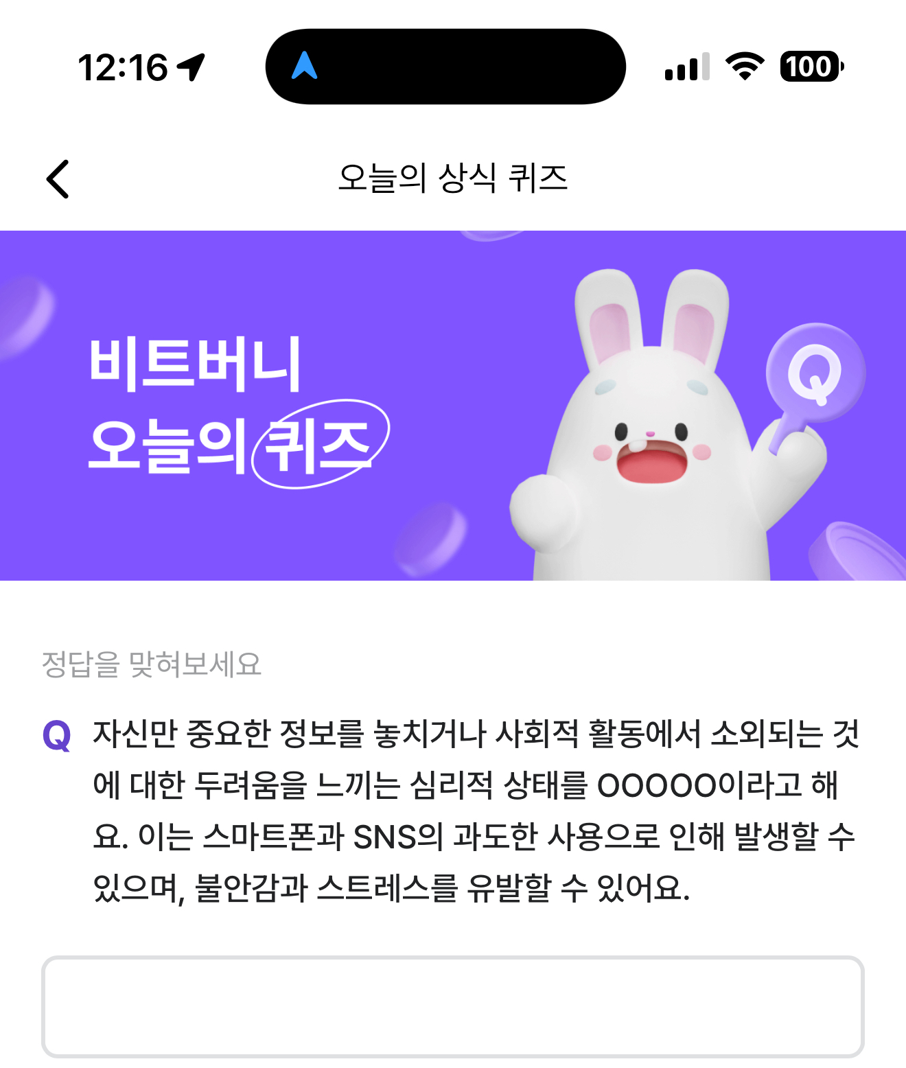 비트버니 오늘의 퀴즈 정답은 포모증후군 입니다