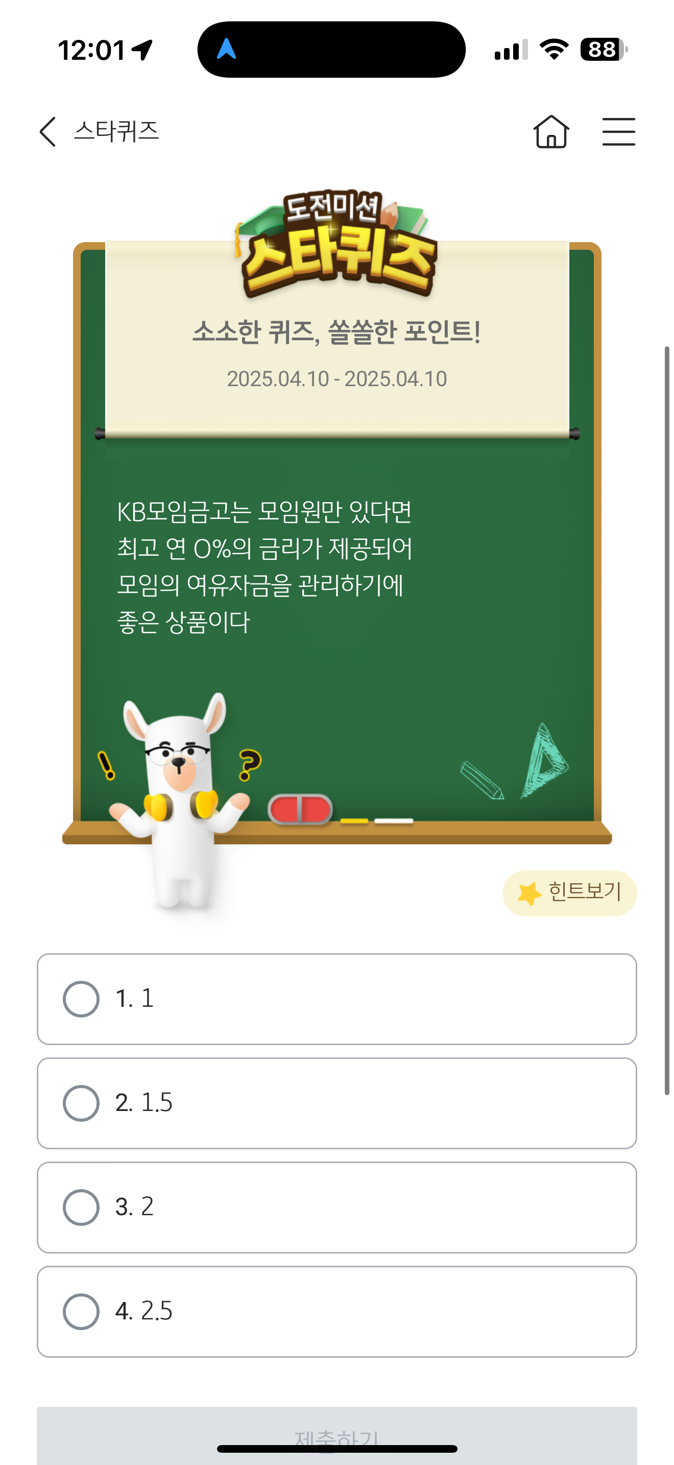KB스타뱅킹 스타퀴즈 4월 10일 문제입니다
