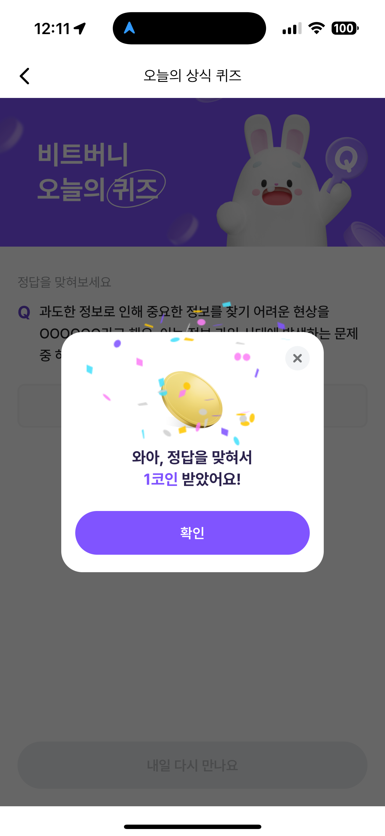 비트버니 오늘의 퀴즈 초성 힌트는 ㄷㅇㅌㅅㅁㄱ 입니다