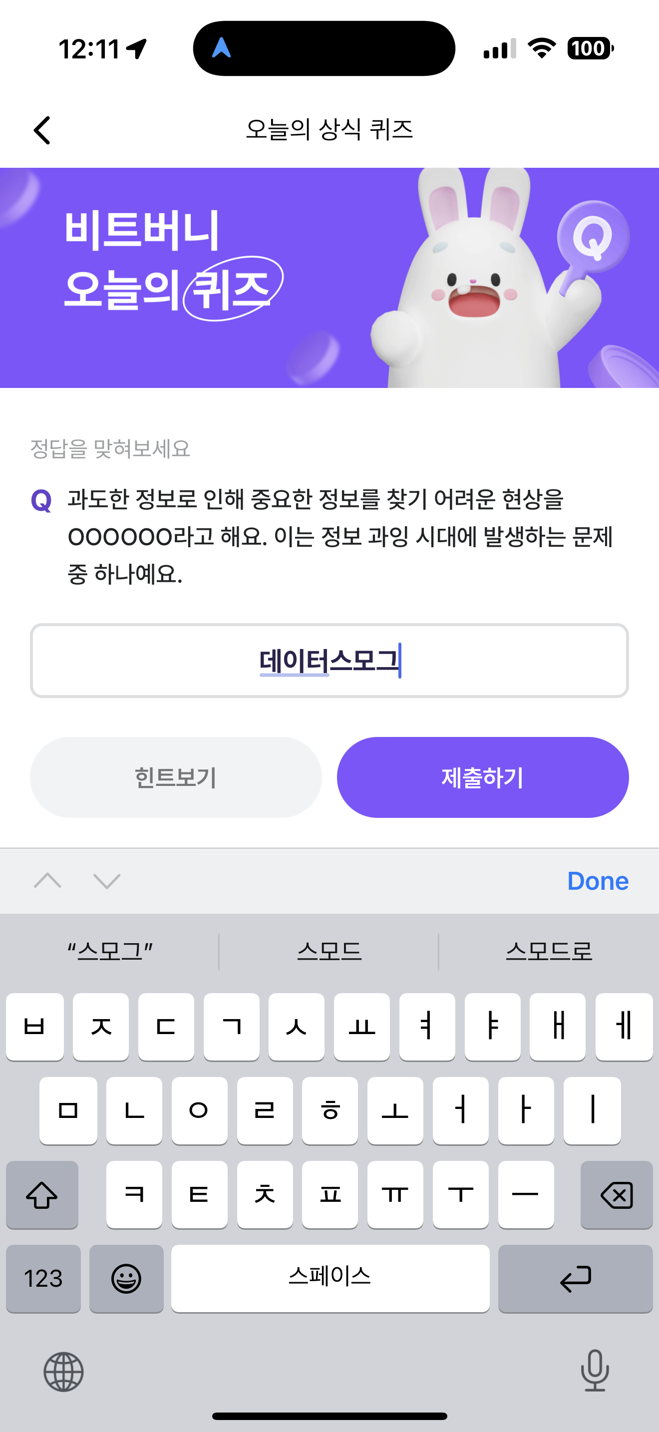 비트버니 오늘의 퀴즈 정답은 데이터스모그 입니다