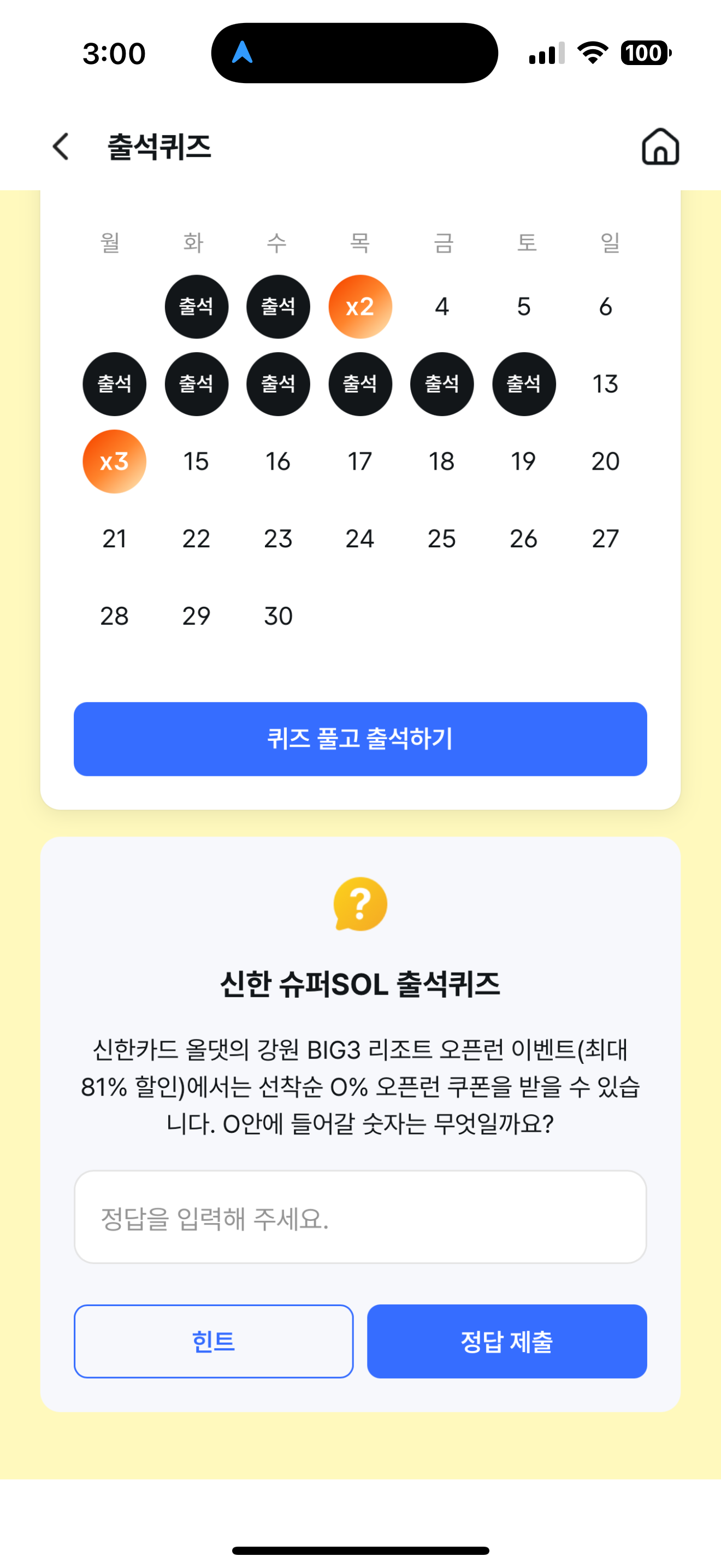 신한 슈퍼SOL 출석퀴즈 정답은 7 입니다