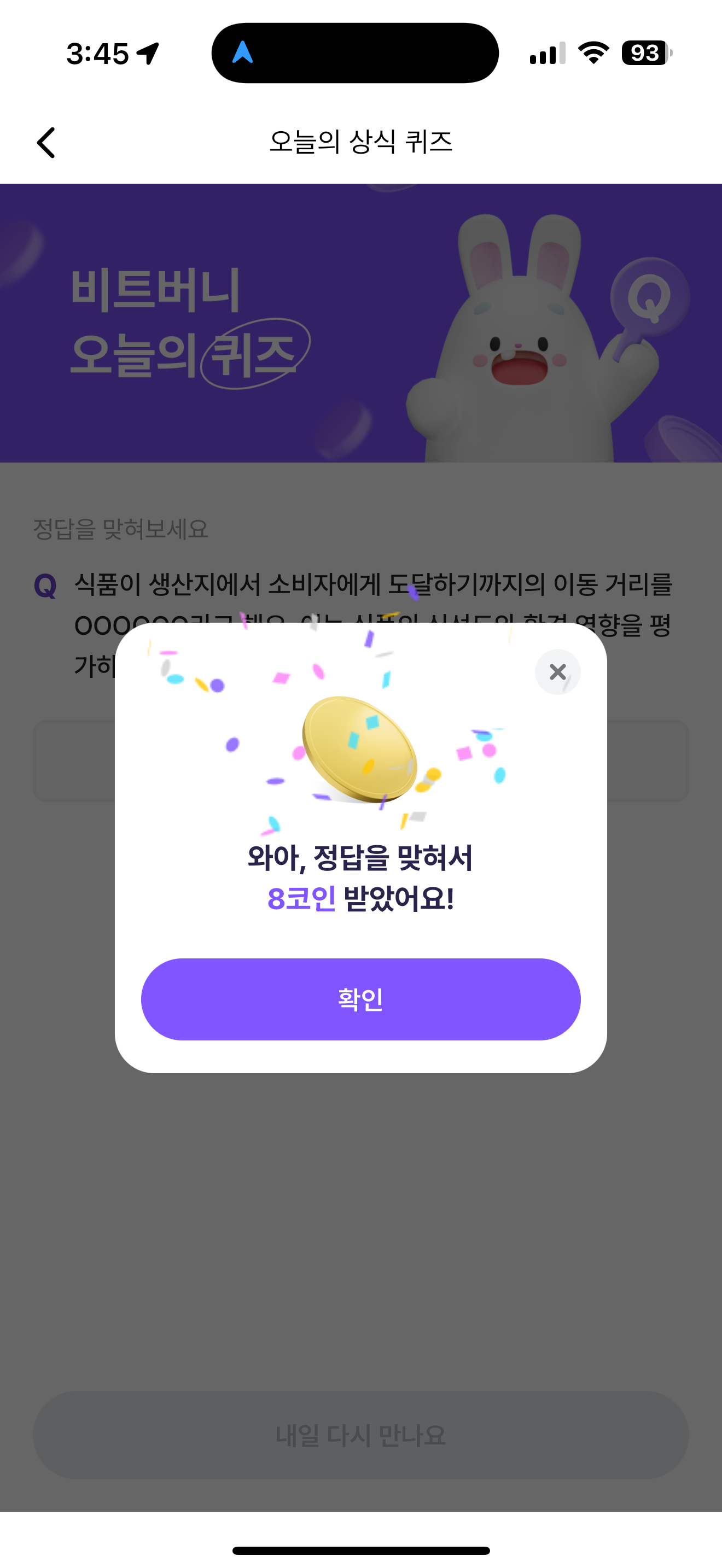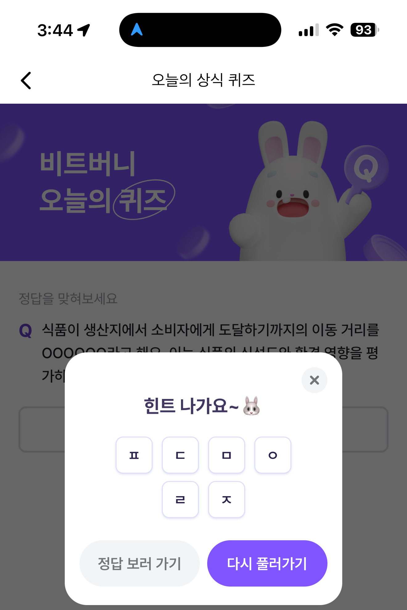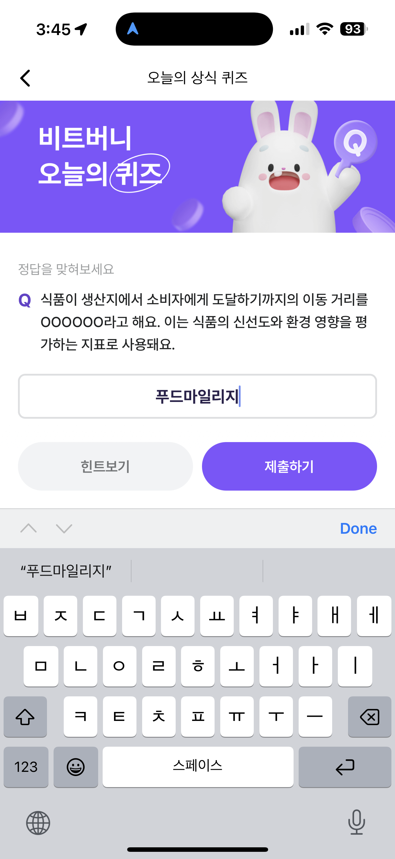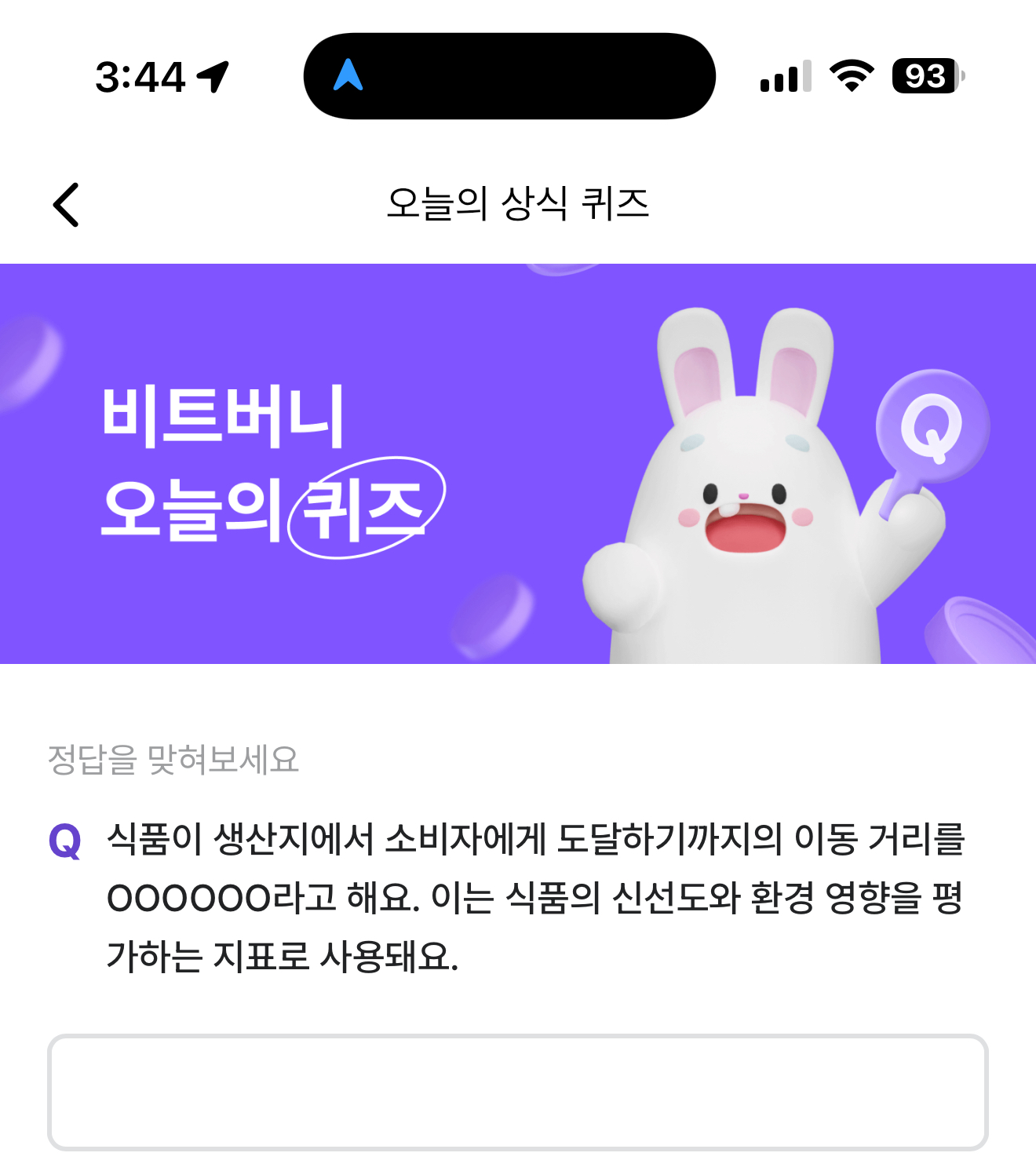 비트버니 오늘의 퀴즈 정답은 푸드마일리지 입니다