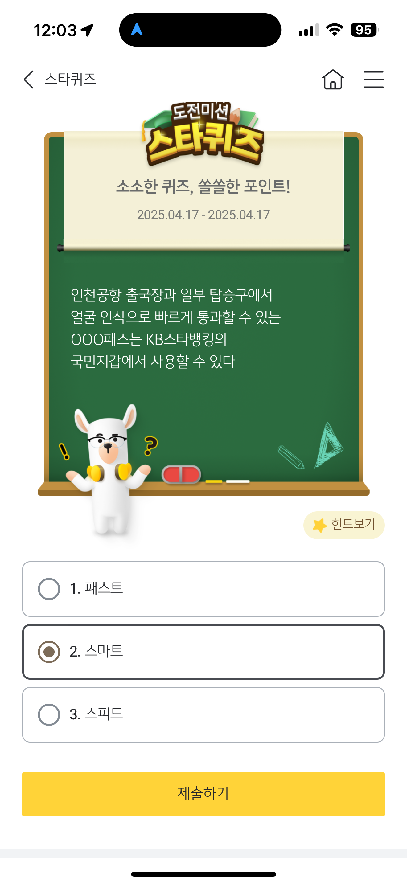KB스타뱅킹 스타퀴즈 정답은 2. 스마트 입니다