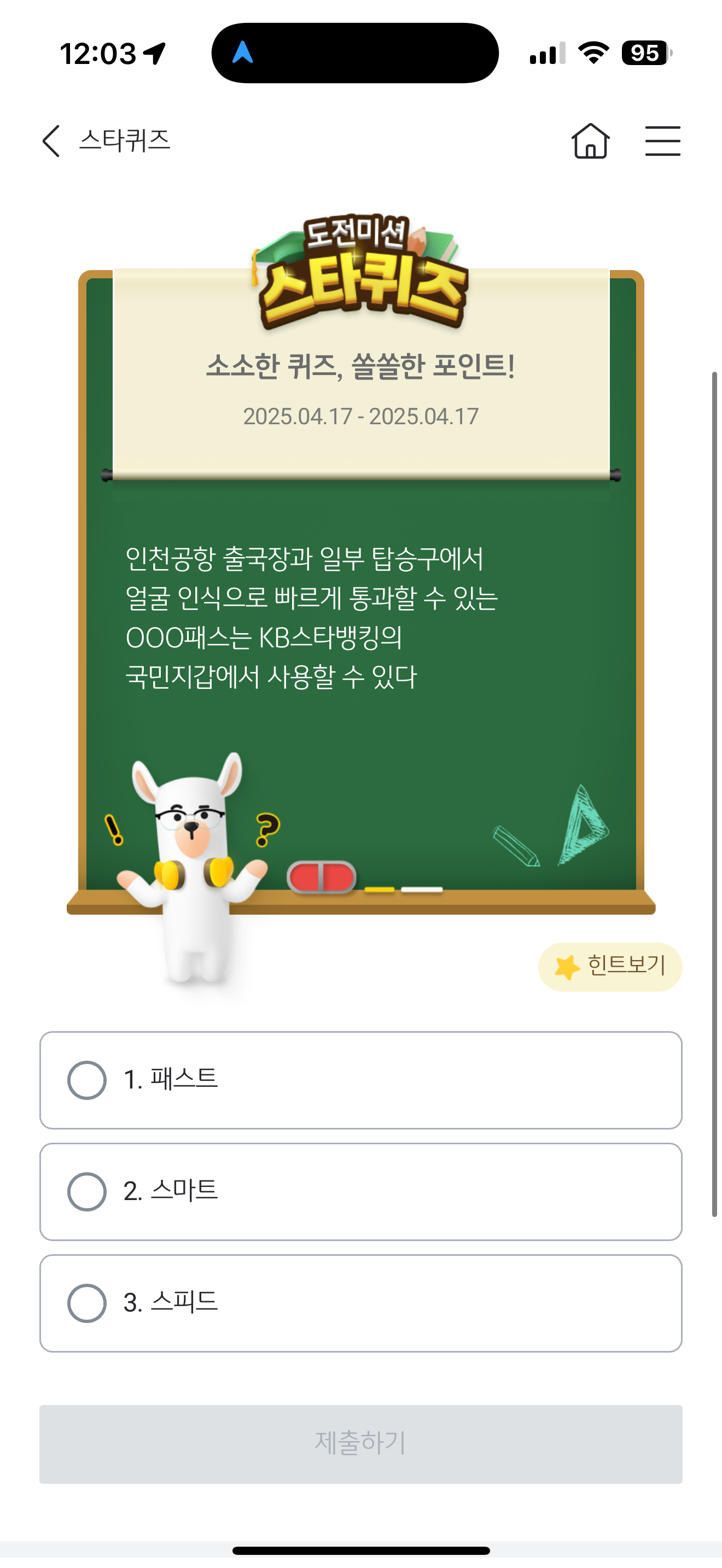 KB스타뱅킹 스타퀴즈 4월 17일 문제입니다