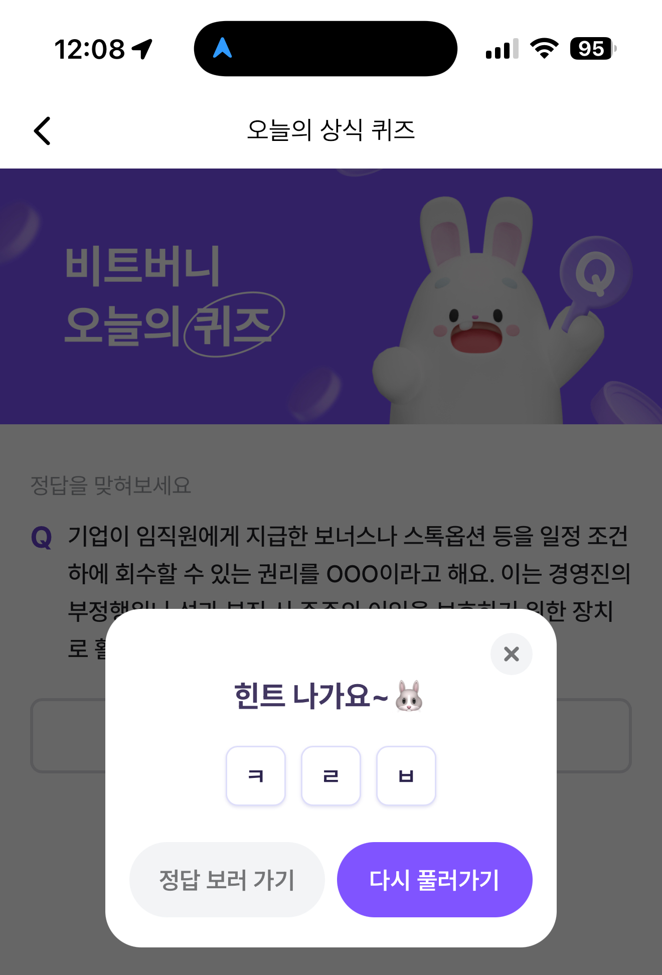 비트버니 오늘의 퀴즈 초성 힌트는 ㅋㄹㅂ 입니다