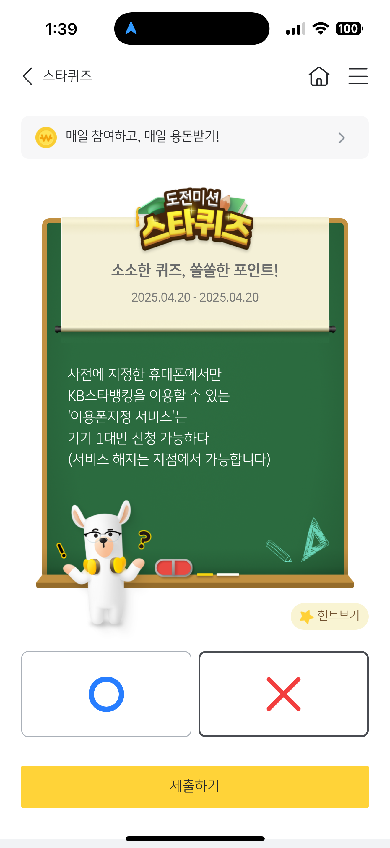 KB스타뱅킹 스타퀴즈 4월 20일 문제입니다