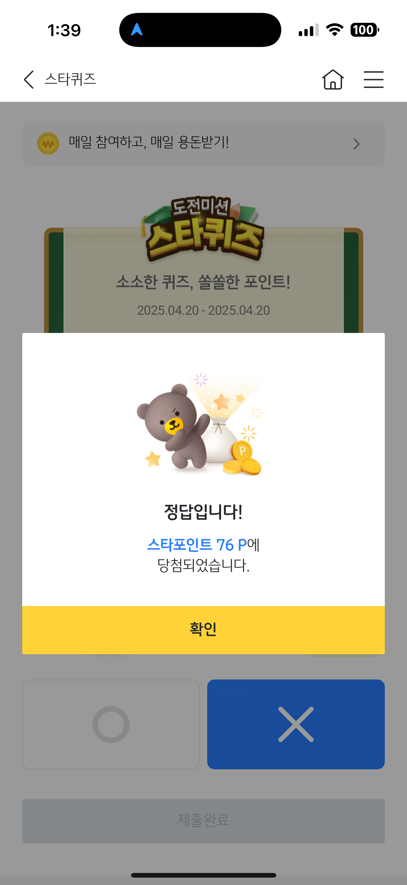 KB스타뱅킹 스타퀴즈 정답은 X 입니다