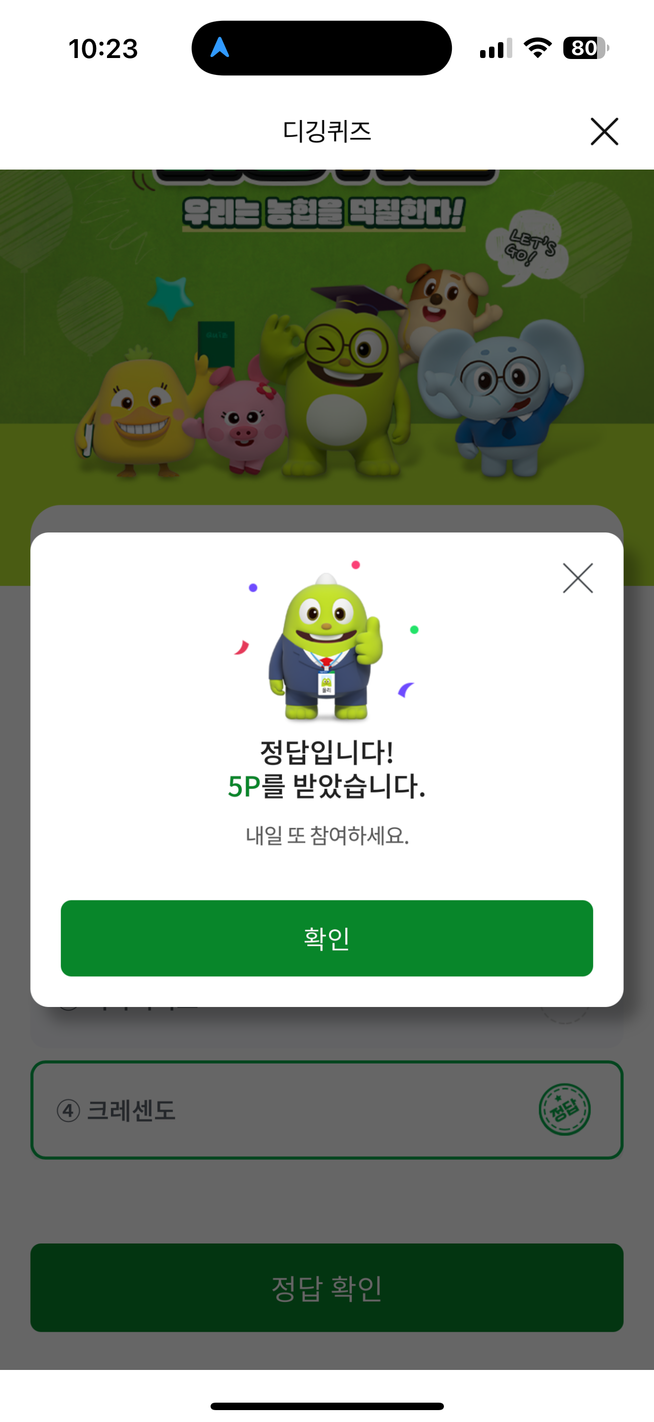 NH올원뱅크 디깅퀴즈 정답은 크레센도 입니다