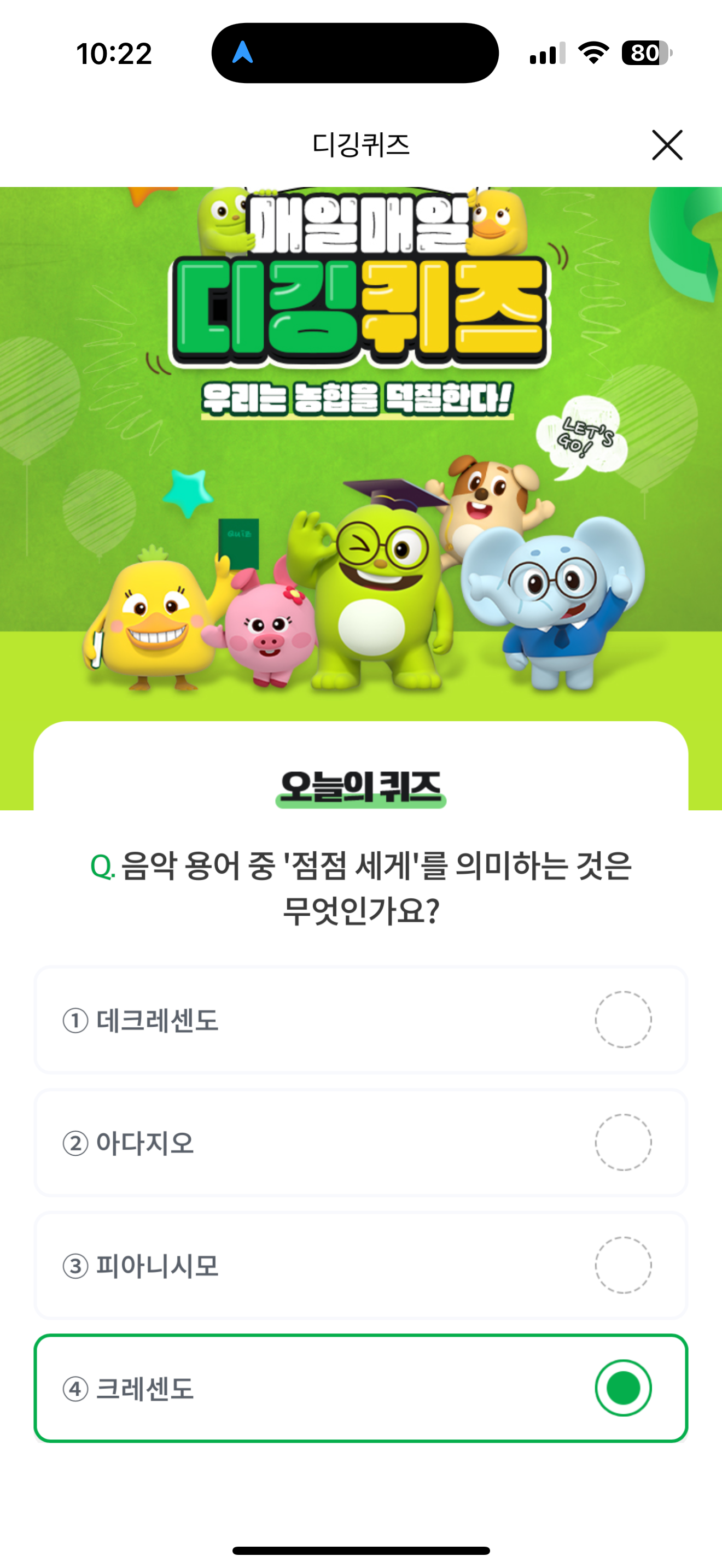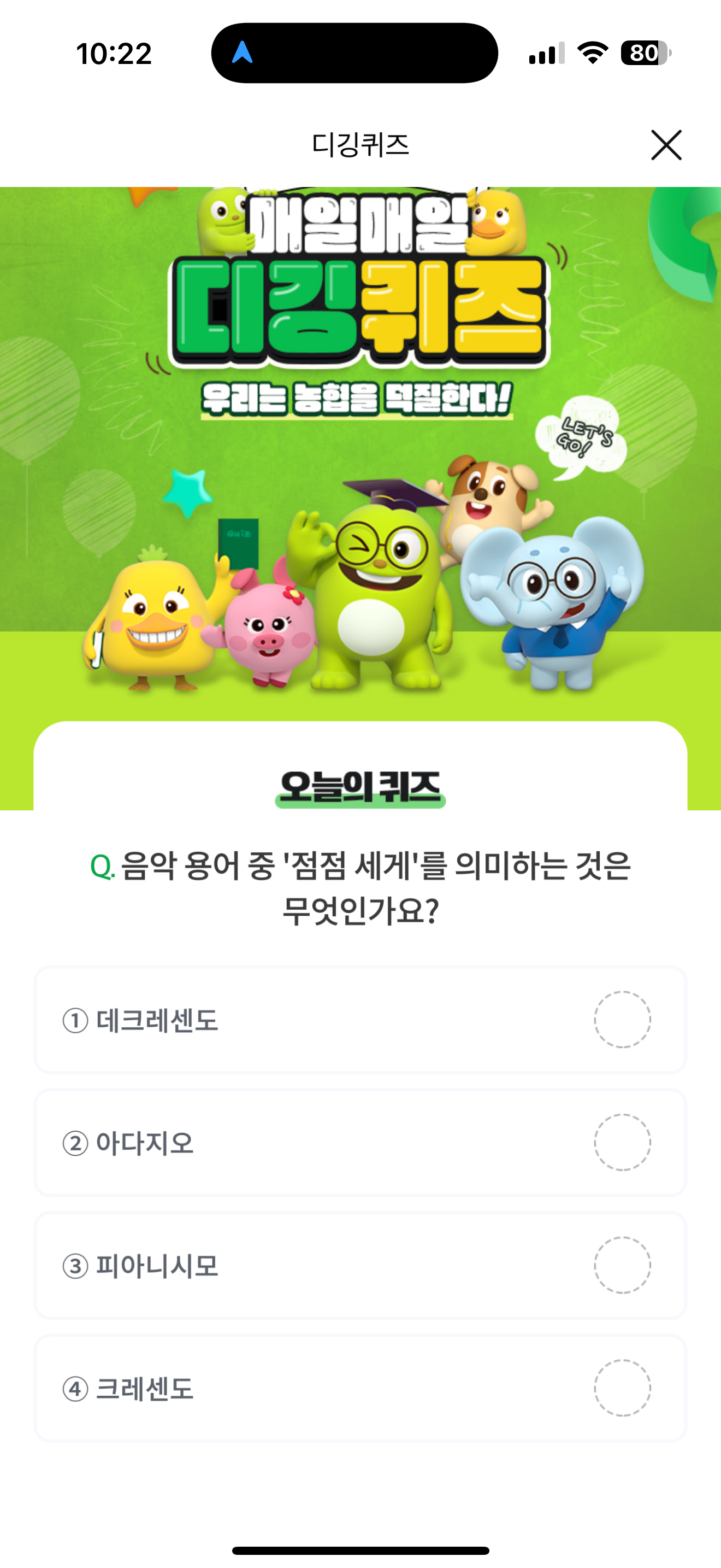 NH올원뱅크 디깅퀴즈 정답은 크레센도 입니다