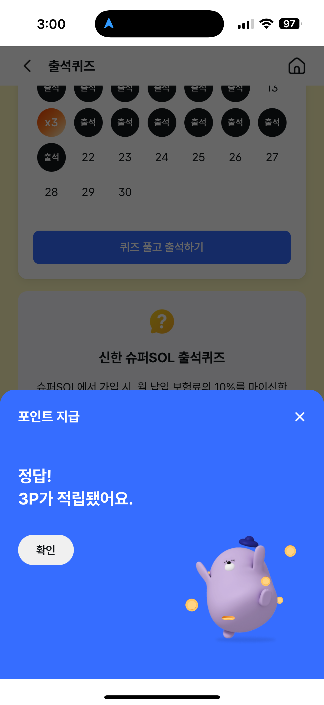 신한 슈퍼SOL 출석퀴즈 4월 22일 문제입니다