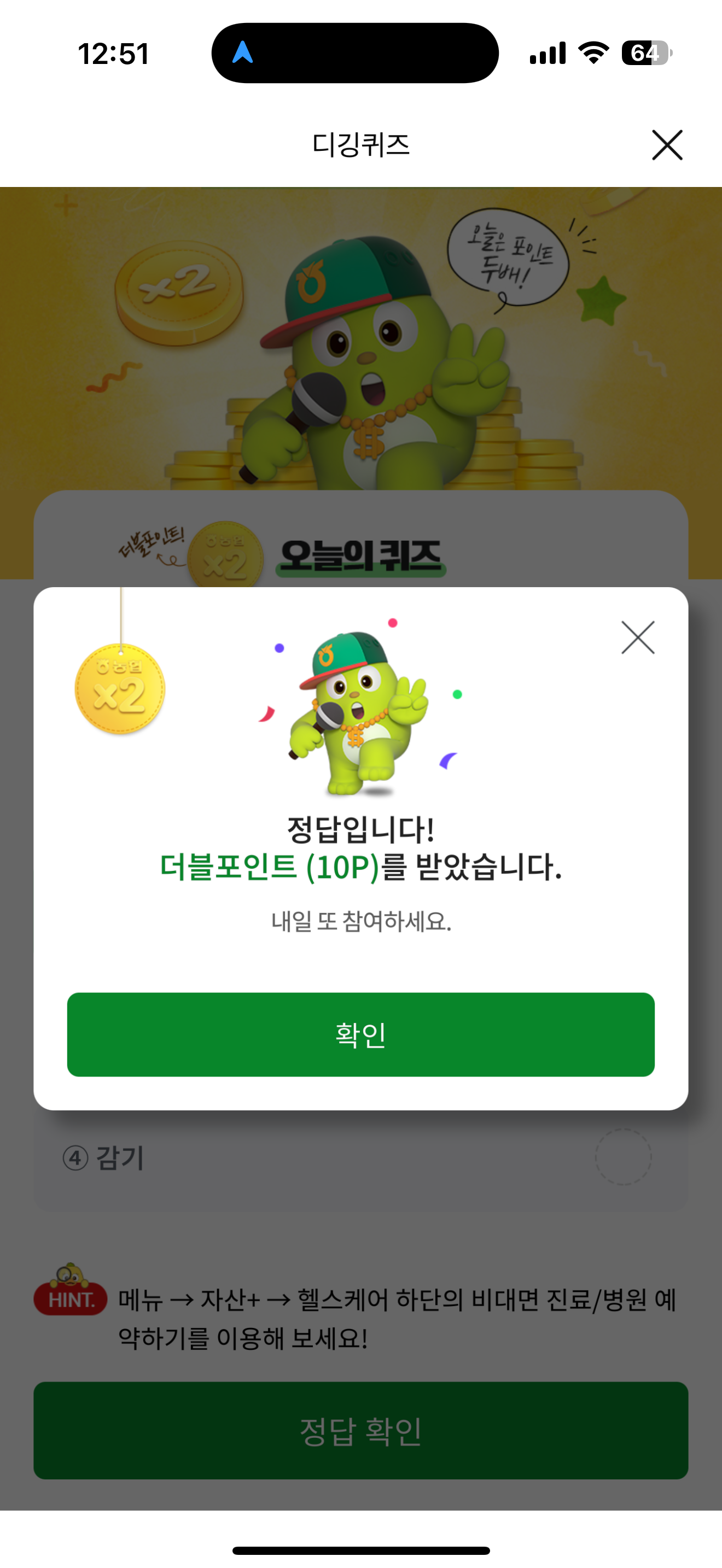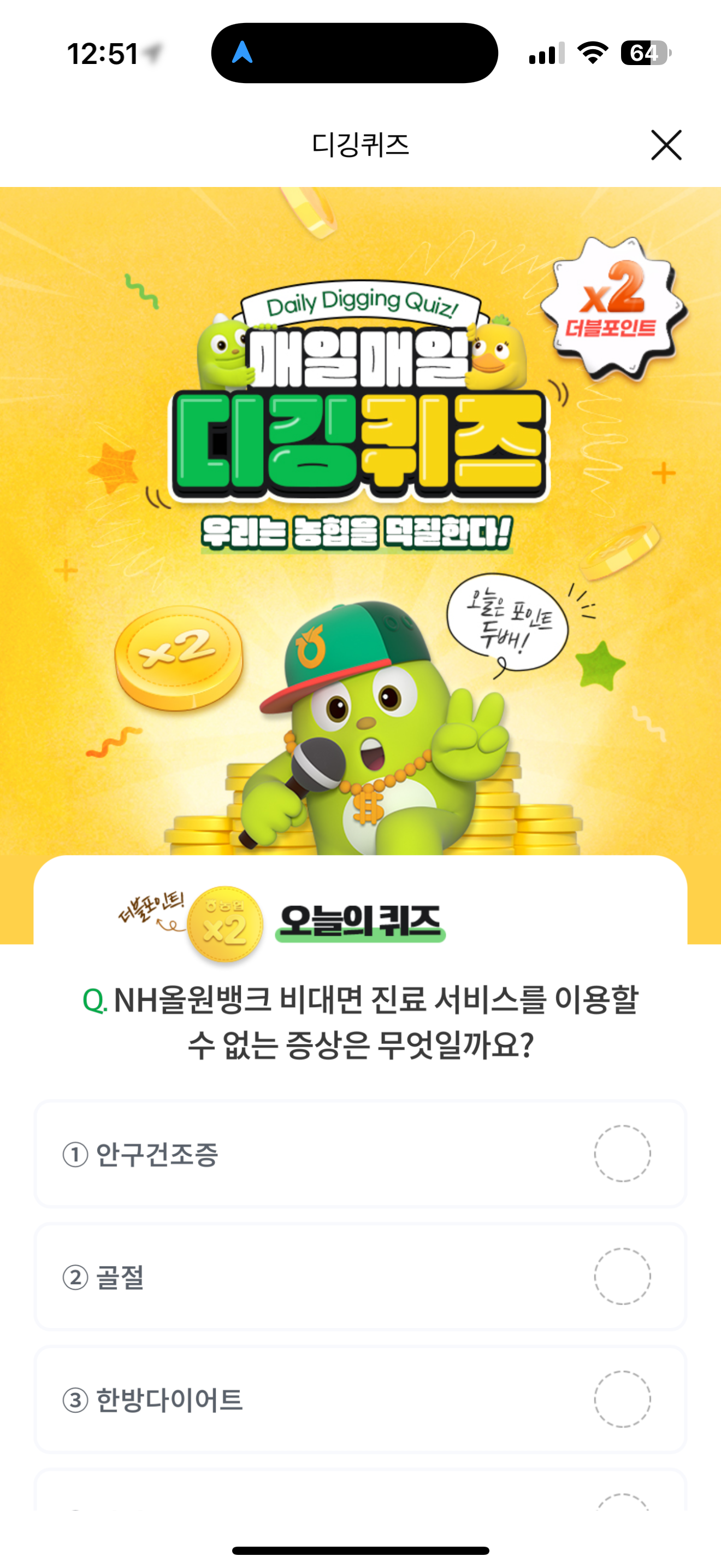 NH올원뱅크 디깅퀴즈 정답은 골절 입니다