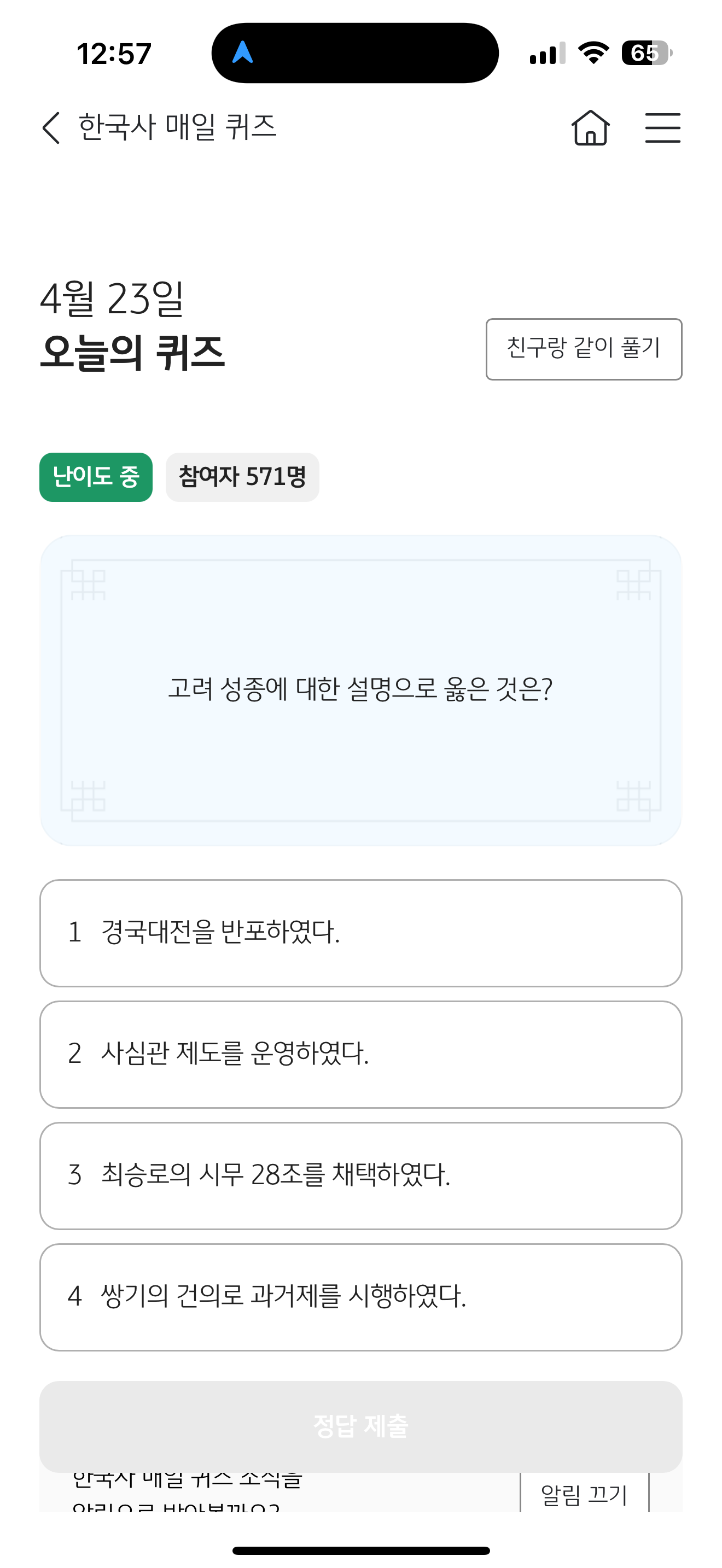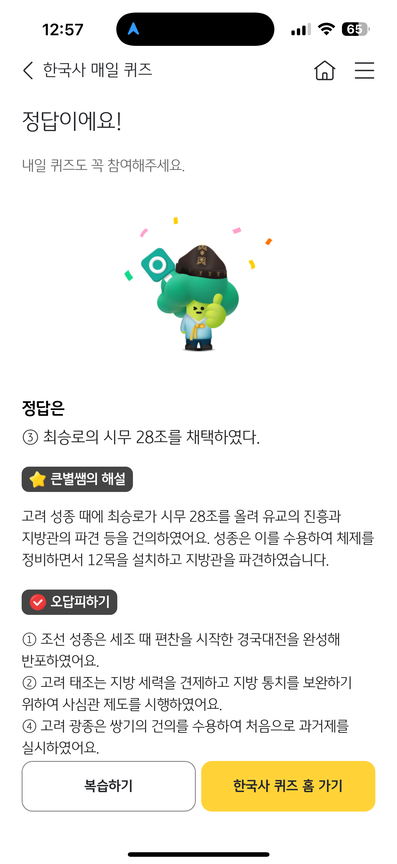 KB스타뱅킹 한국사 매일 퀴즈 정답은 최승로의 시무 28조를 채택하였다 입니다