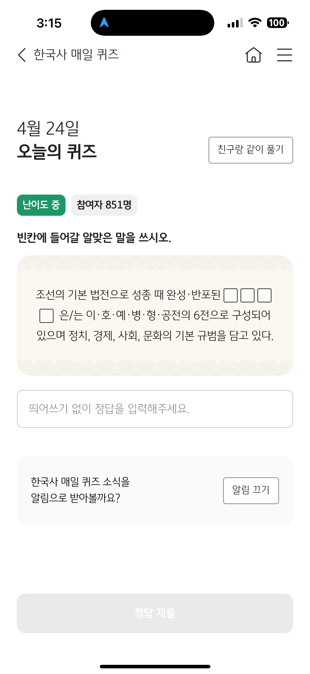 KB스타뱅킹 한국사 매일 퀴즈 정답은 경국대전 입니다