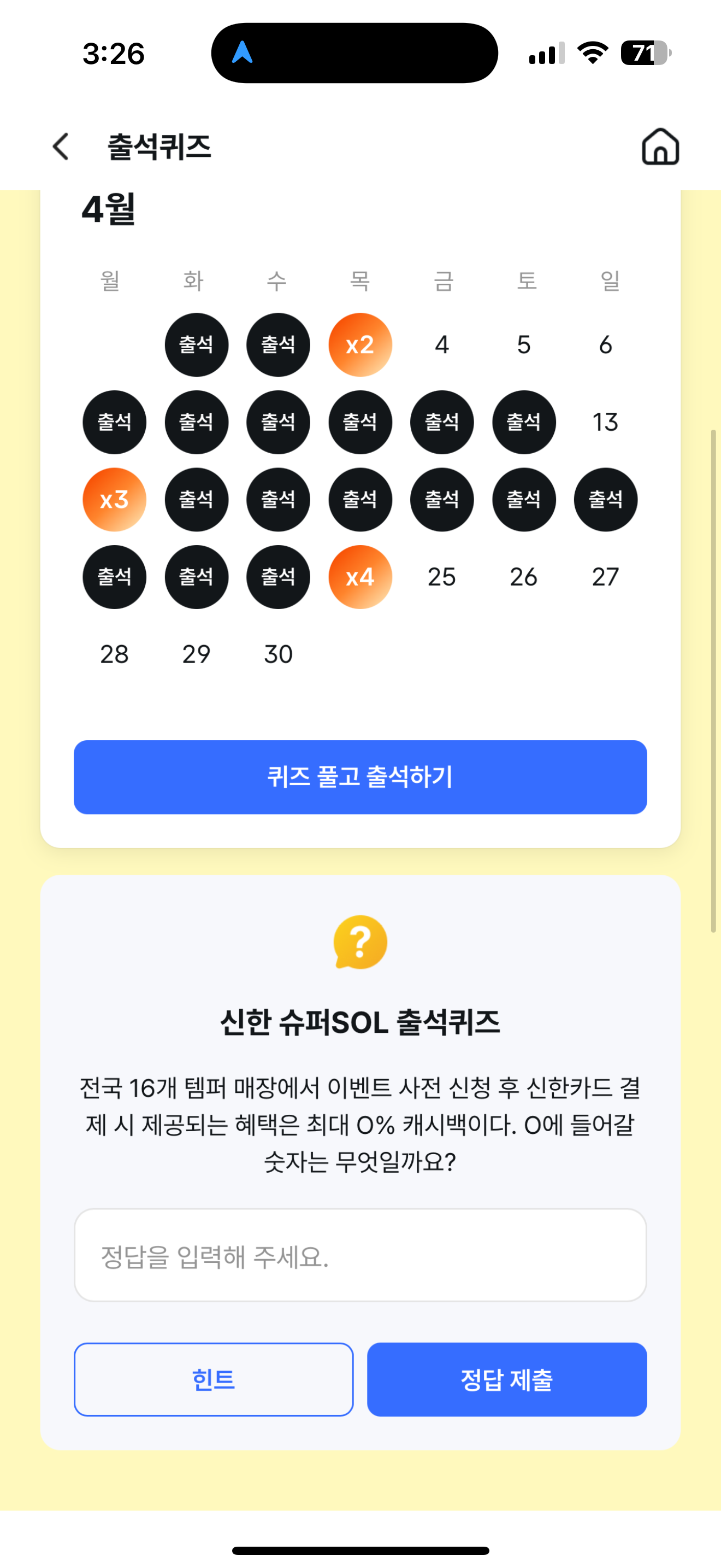 신한 슈퍼SOL 출석퀴즈 정답은 2 입니다