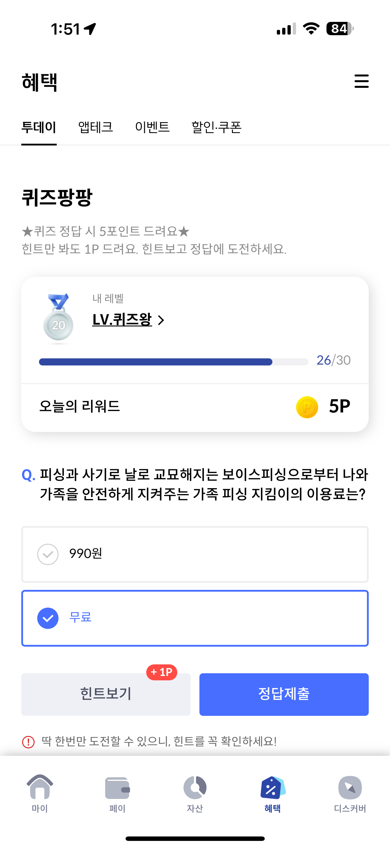 신한카드 퀴즈팡팡 정답은 무료 입니다