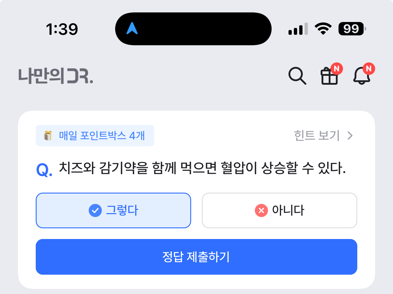 나만의 닥터 퀴즈 정답은 그렇다 입니다