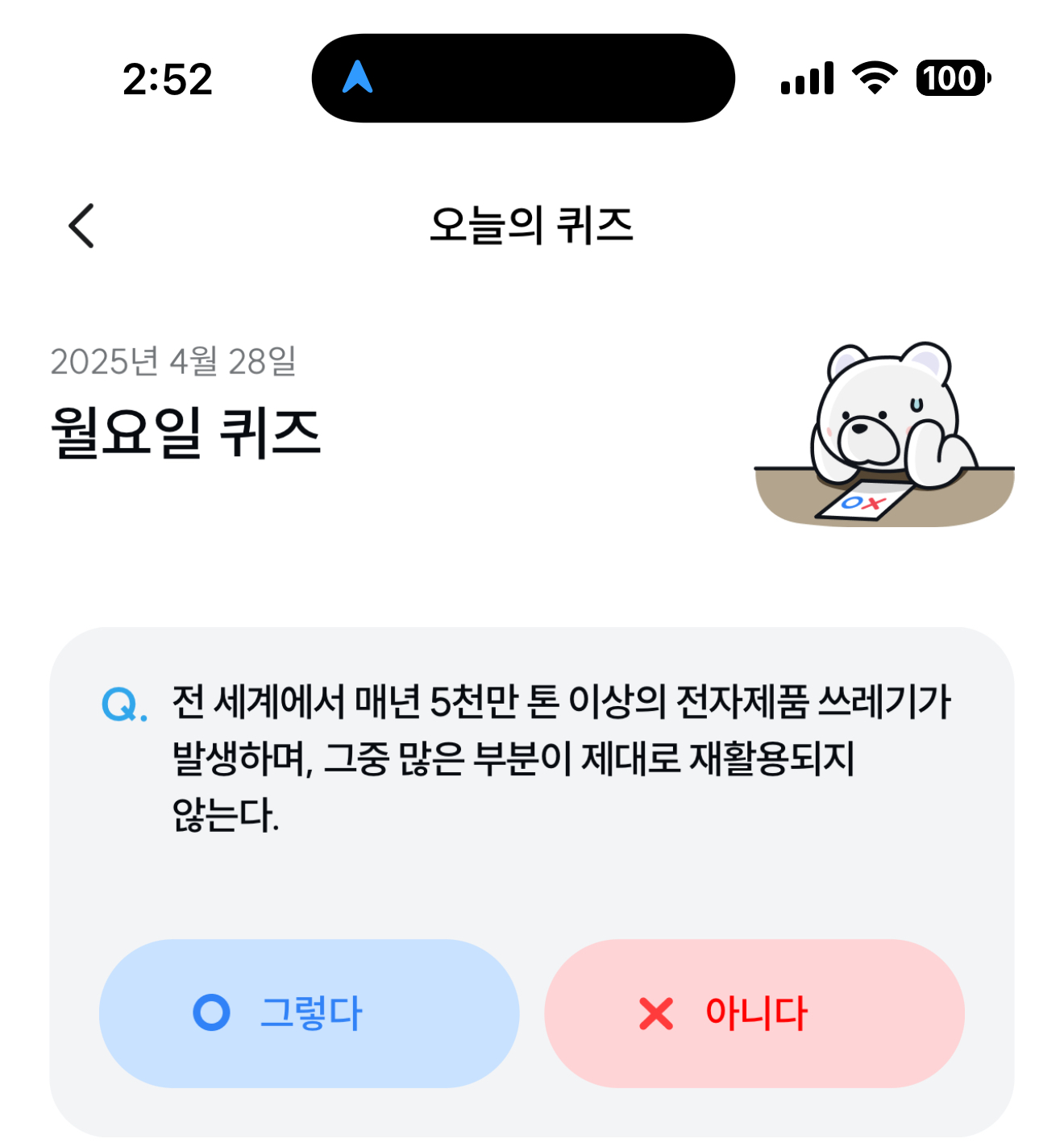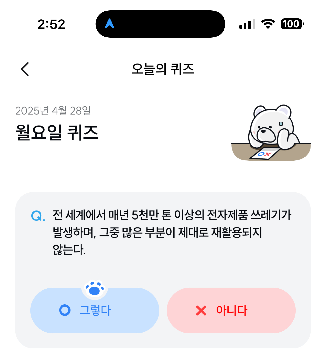 기후행동 기회소득 오늘의 퀴즈 정답은 그렇다 입니다