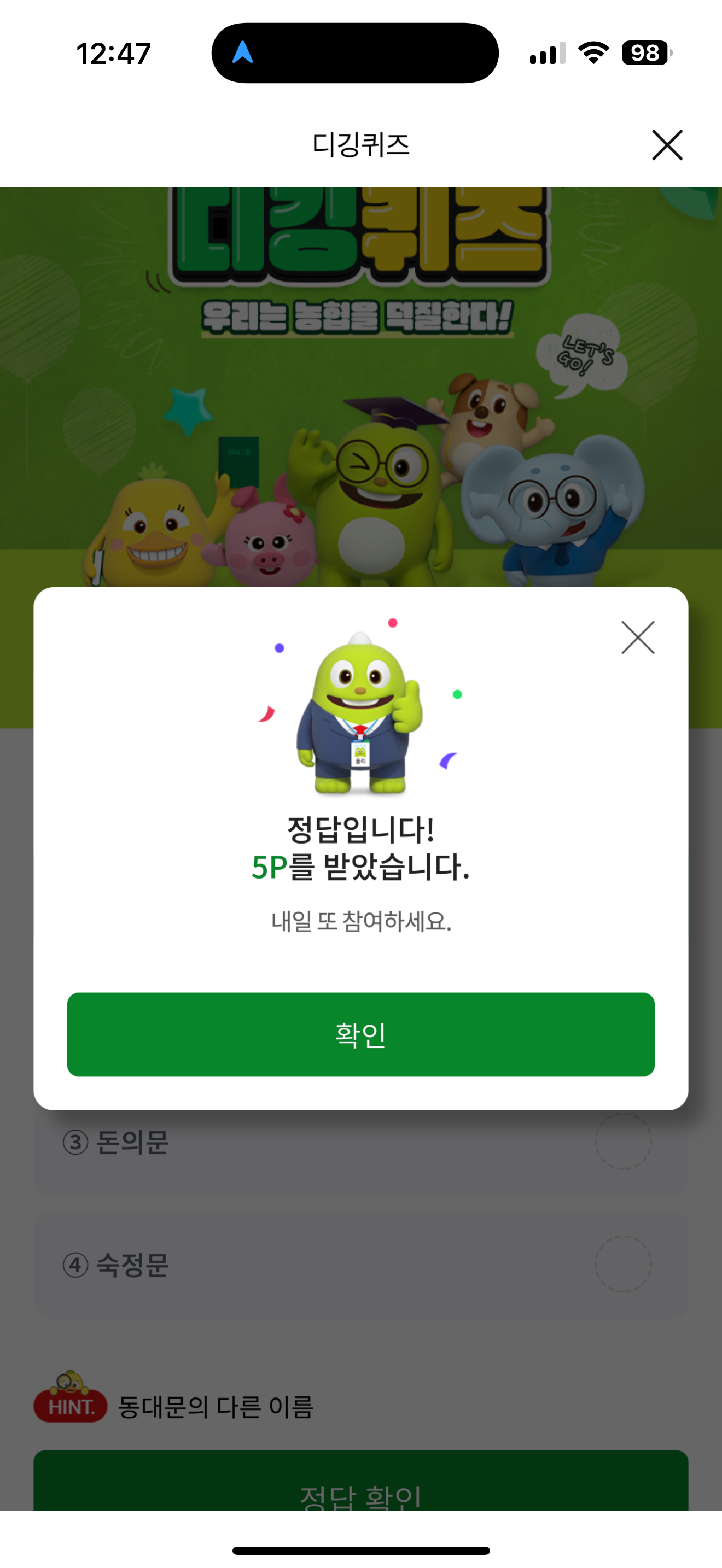 NH올원뱅크 디깅퀴즈 정답은 흥인지문 입니다