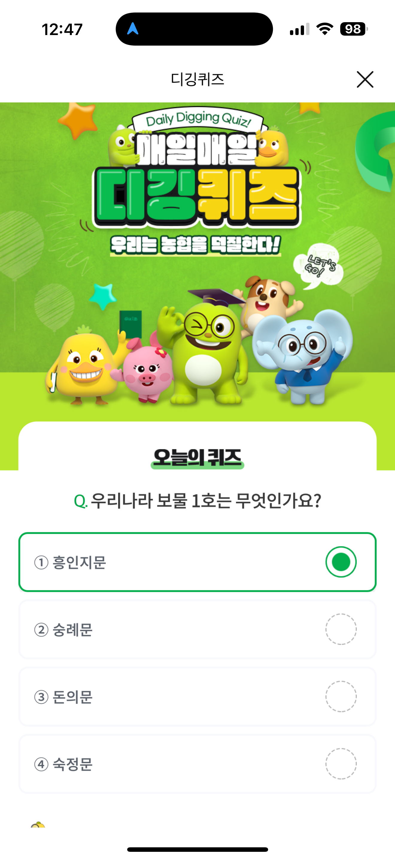 NH올원뱅크 디깅퀴즈 4월 29일 정답(우리나라 보물 1호는 무엇인가요?)
