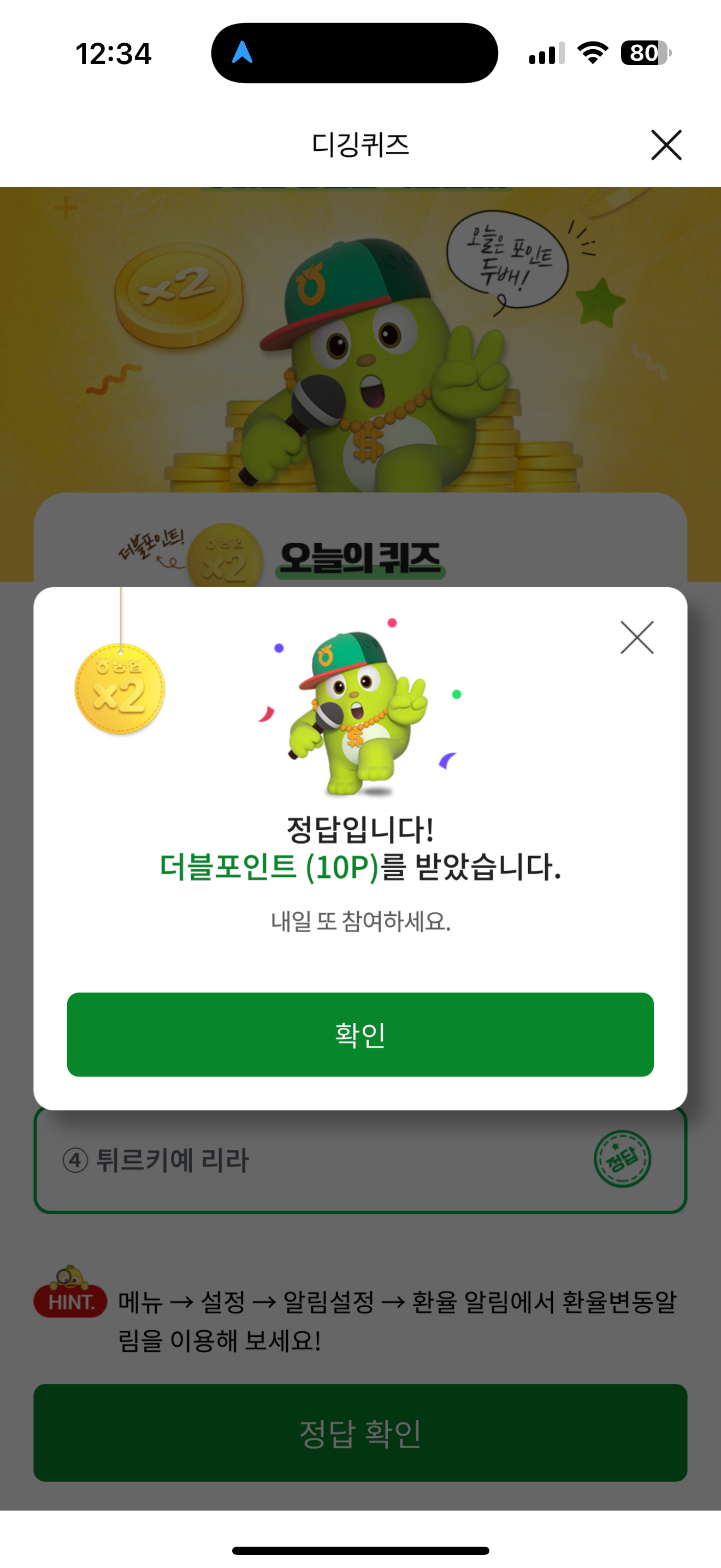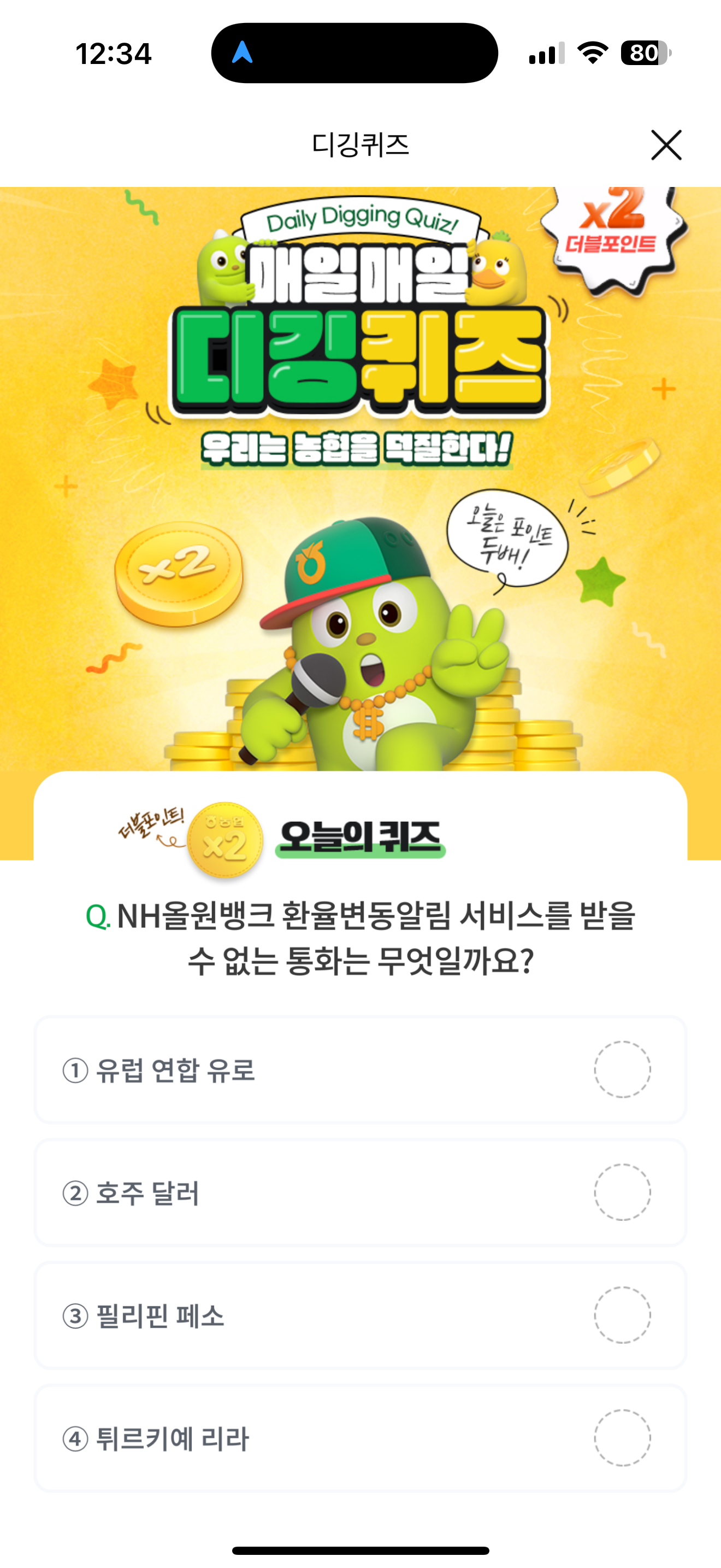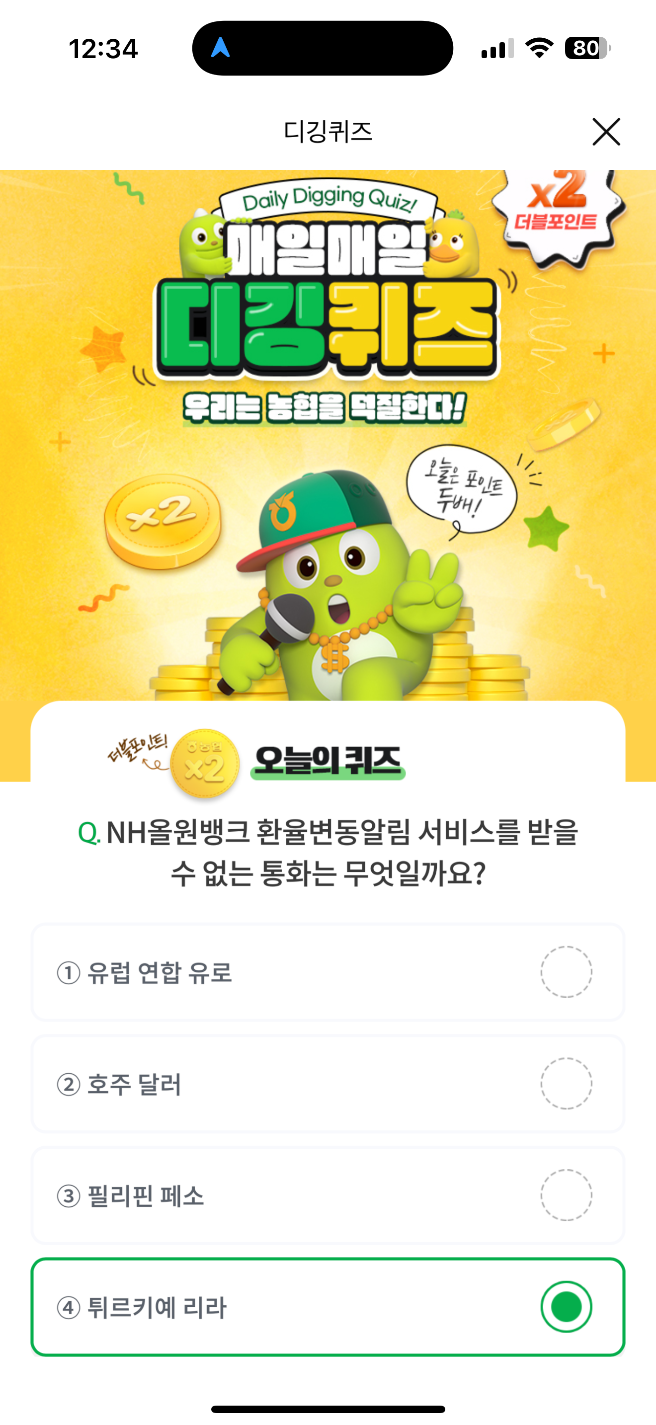 NH올원뱅크 디깅퀴즈 정답은 튀르키예 리라 입니다